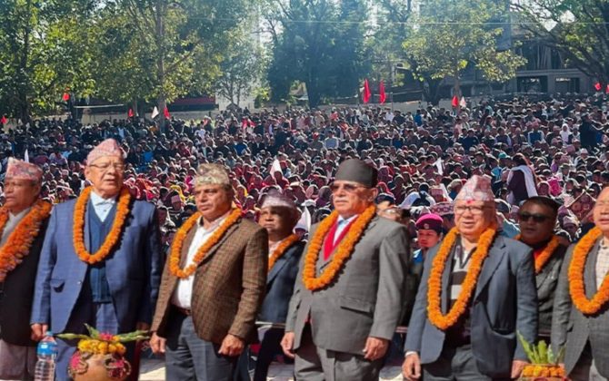 १३ मंसिर, काठमाडौं दाङमा नेपाली कम्युनिस्ट पार्टी (नेकपा) को एकता सन्देश सभा सुरु भएको छ । शुक्रबार सुदूरपश्चिमको धनगढीमा एकता सन्देश सभा गरेको नेकपाले शनिबार दाङको देउखुरीमा लुम्बनी प्रदेशस्तरीय सभा आयोजना गरेको हो । एकता सन्देश सभालाई नेकपाका संयोजक पुष्पकमल...