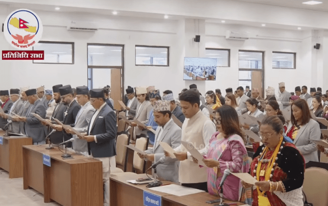 १२ चैत, काठमाडौंप्रतिनिधिसभाका नवनिर्वाचित सांसदहरूले शपथ ग्रहण गरेका छन् । सिंहदरबारस्थित संसद्को अस्थायी भवनमा आयोजित सभामा उनीहरूले शपथ लिएका हुन् । प्रतिनिधिसभाका ज्येष्ठ सदस्य अर्जुननरसिंह केसीले पद तथा गोपनीयताको शपथ गराएका हुन् ।संसद् सचिवालयका अनुसार...