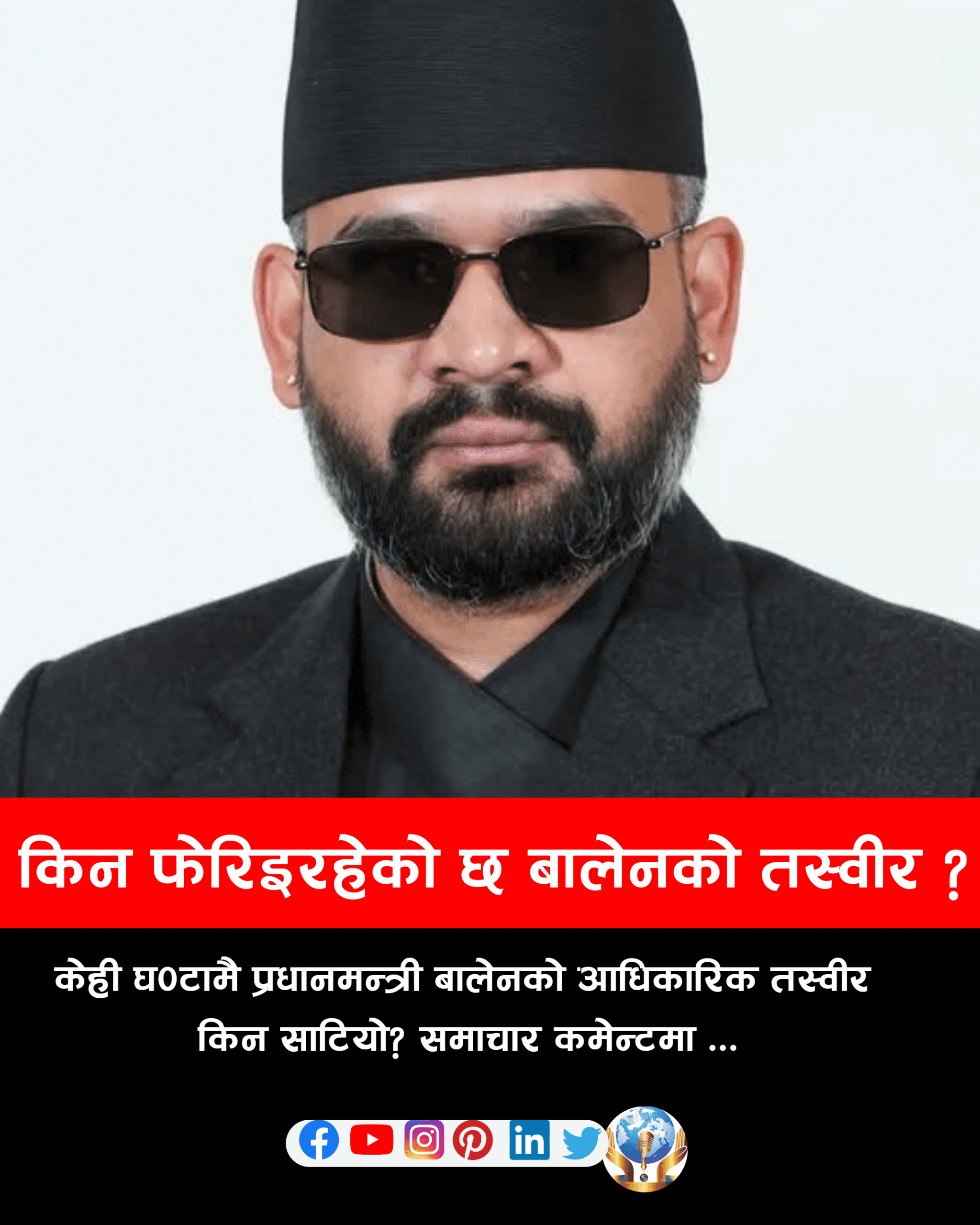 काठमाडौँ : प्रधानमन्त्री बालेन्द्र शाह (बालेन) सार्वजनिक गरिएको आधिकारिक तस्वीर केही घण्टामै साटिएको छ। प्रधानमन्त्रीको सचिवालयले केही घण्टाकै अन्तरालमा दुईपटक तस्वीर सार्वजनिक गरेको हो। पहिलोपटक जारी भएको बालेनको चस्मावाला तस्वीरमा उनले लगाएको चस्मामा एक निजी कम्पनीको ब्रान्ड देखिएपछि फेरिएको...