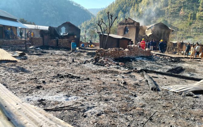 शनिबार राति प्युठानको ऐरावती गाउँपालिका १ छेडाघाटको बस्तीमा भीषण आगलागी भयाे । दिनभरकाे थकान मेट्न मस्त निद्रामा सुतेका स्थानीयका बासमा विश्मयकारी आगाेकाे लप्का दन्किएपछि उनीहरुकाे हाेस् हवास उठ्याे । रातभर आफ्नै बस्ती, पशुचाैपाया, नगद रुपैयाँ, घरभित्र रहेका सम्पूर्ण लत्ताकपडा...