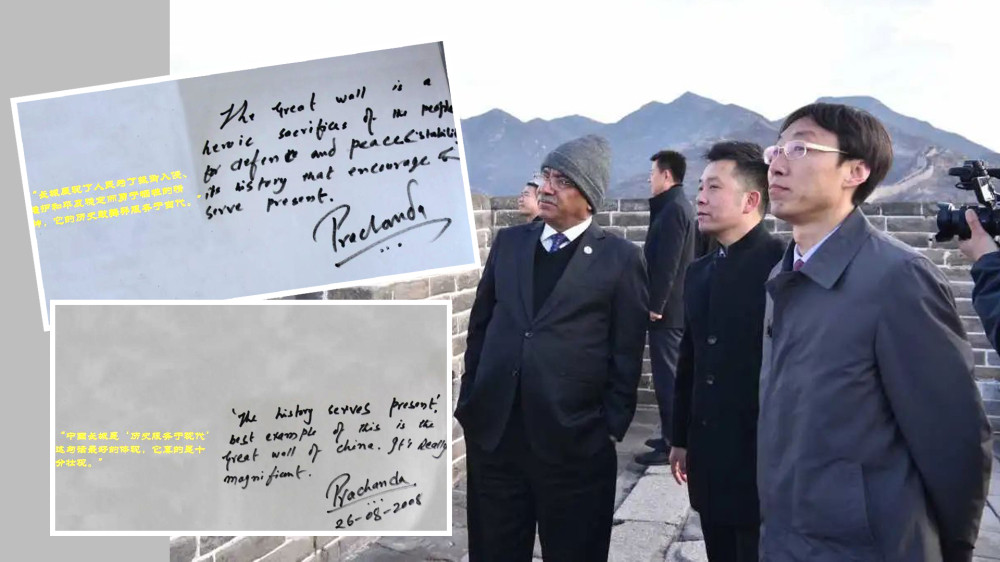 सन् १९५४ अक्टोबरमा चिनियाँ प्रधानमन्त्री चौ एनलाईले भारतीय प्रधानमन्त्री जवाहरलाल नेहरुलाई पातालिङ ग्रेटवालमा चढाएपछि हालसम्म अनेकौं सरकार प्रमुखहरूले त्यहाँ पाइला टेकेका छन्। त्यहाँ पुगेपछि पुस्तिकामा केही शब्द कोरेर संसारका नेताहरूले गहिरो सन्देश प्रवाह गरेका छन्। सन् १९९५ जुलाई यता विभिन्न देशका सरकार प्रमुखबाट कूल २६० भन्दा बढी लेखोटहरू संकलन भएका छन्। विभिन्न ८ वटा शीर्षकमा उनीहरूले भावना पोखेका छन्। मित्रता र शान्तिको पर्याय बनेको ग्रेटवालप्रतिको गहिरो भावना, चिनियाँ प्राचीन संस्कृतिप्रतिको सम्मान, चिनियाँ जनताको बहादुरी, धैर्य र लगनशीलता अनि वर्तमानमा चीनको आत्मविश्वास र दृढता जस्ता विषयलाई मुक्तकण्ठले प्रशंसा गरेको पाइन्छ। यस्तै प्रशंसकमध्ये एक दाहालले पुस्तिकामा लेखेका थिए, ‘इतिहासले वर्तमानको सेवा गर्छ, यस्को उच्चतम उदाहरण चीनको ग्रेटवाल हो। यो वास्तवमै अदभूत छ।’