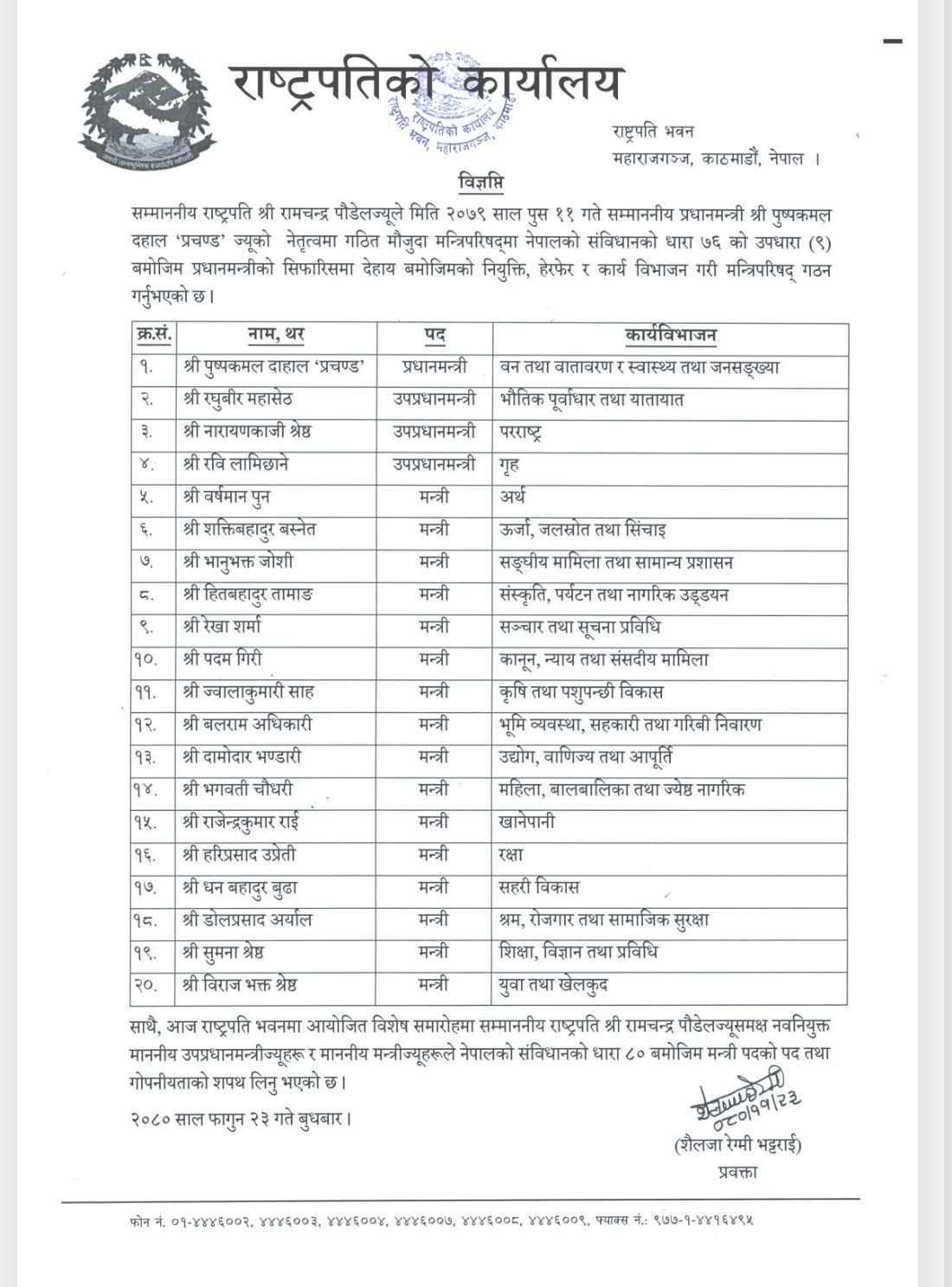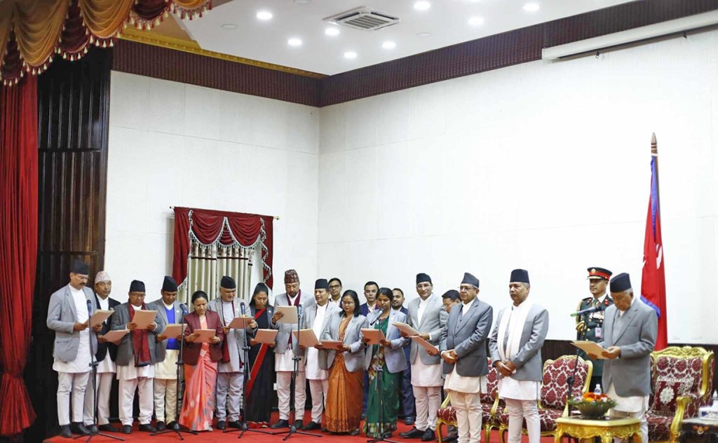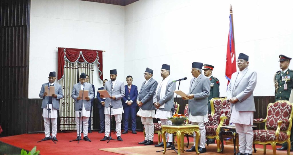 नवनियुक्त मन्त्रीहरुले राष्ट्रपति भवन शीतलनिवासमा आयोजित समारोहमा राष्ट्रपति रामचन्द्र पौडेलसँग शपथ लिएका हुन् ।