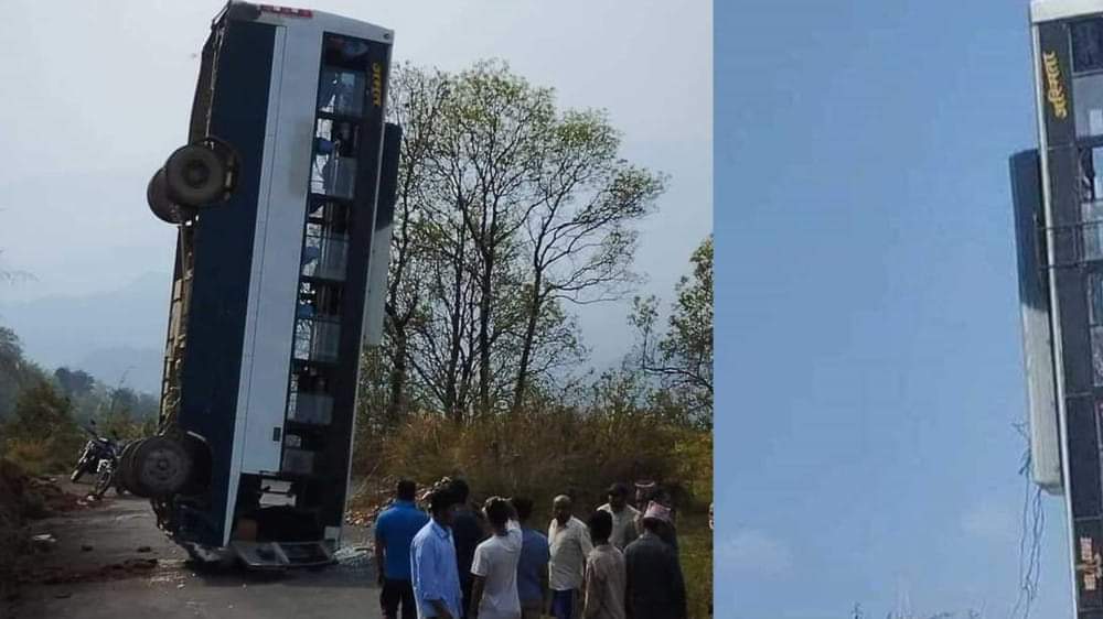 बस दुर्घटना भएको तस्वीर र भिडियो सामाजिक सञ्जालमा भाइरल भएको छ । बस सडकमा ठाडै उभिएको छ । त्यही तस्वीर र भिडियो सामाजिक सञ्जालमा भाइरल भएको हो ।