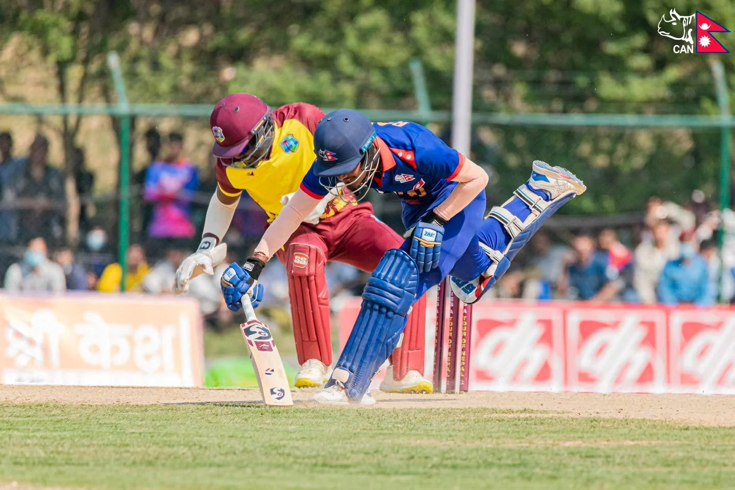 तेस्रो ओभरमा स्पिनर सागर ढकालले जोनसन चार्ल्सलाई ११ र एलिक एथानाजेलाई ६ रनमा आउट गरेका थिए । त्यसपछि कुनैपनि समय वेष्टइण्डिजले आक्रामक क्रिकेट खेल्न सकेका थिएनन् ।