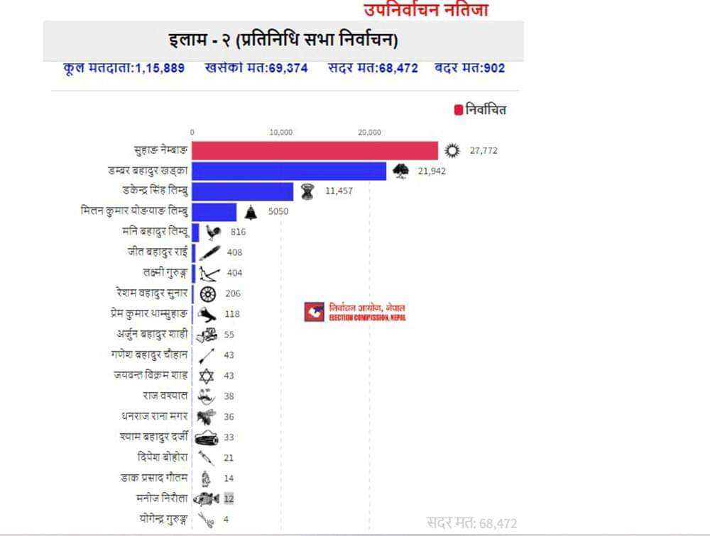 चौथो स्थानमा रहेका रास्वपाका लिम्बूले पाँच हजार ५० मतमात्र पाए। जमानत जफत हुनेमा राष्ट्रिय प्रजातन्त्र पार्टीका लक्ष्मी गुरुङ, नेपाल कम्युनिष्ट पार्टी (एकीकृत समाजवादी)का जितबहादुर राई, जनमत पार्टीका प्रेमकुमार थाम्सुहाङ, नेपाल मजदुर किसान पार्टीका श्यामबहादुर दर्जी, मङ्गोल नेशनल अर्गनाइजेशनका मनिबहादुर लिम्बू, नेशनल रिपब्लिक नेपालका धनराज रानामगर, राष्ट्रिय मुक्ति आन्दोलन नेपालका जयन्त्रविक्रम शाह, राप्रपा नेपालका गणेशबहादुर चौहान र नेपाली जनता दलका रेशमबहादुर सुनार नेपाली छन्।