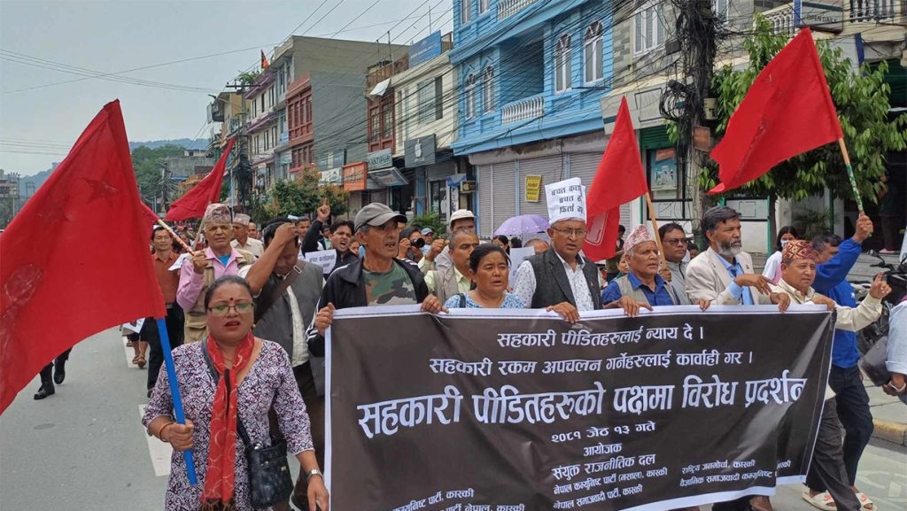 सहकारी पीडितहरुले गृहमन्त्रीको राजीनामा माग गर्नुका साथै बचत रकम अपचलनबारे संसदीय छानबिन समिति बनाउन माग गरेका छन् ।