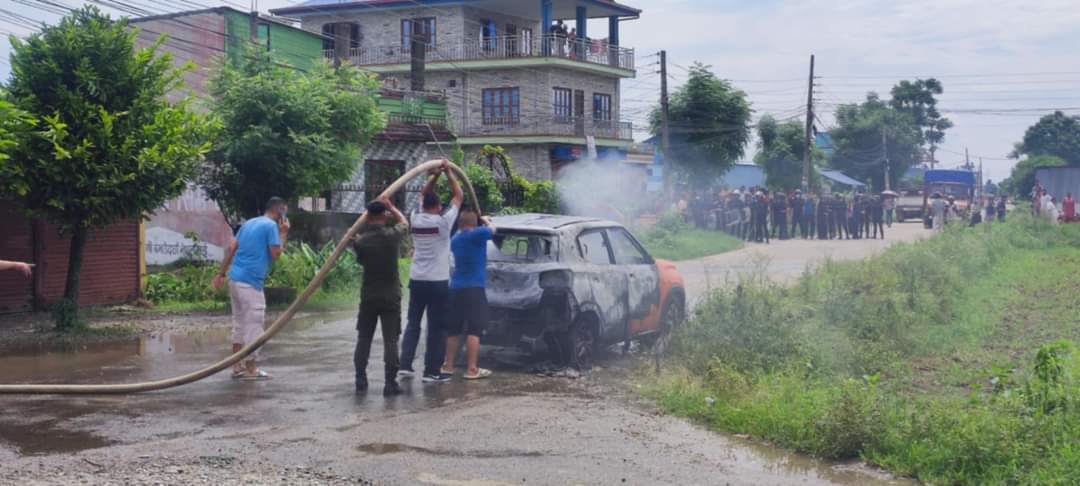 पूर्वपश्चिम रेलमार्गको नक्सांकनमा लागि पुगेका प्राविधिकको टोली चढेको कारलाई स्थानीयले तोडफोड तथा आगजनी गरेका छन् ।