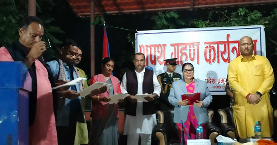 नवनियुक्त मन्त्रीहरुले बिहीबार नै प्रदेश प्रमुख सुमित्रा सुवेदी भण्डारीबाट पद तथा गोपनीयताको शपथ लिएका छन् ।