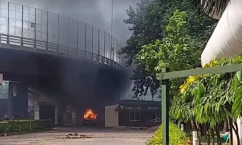 स्टेसनका एक अधिकारीले नाम उल्लेख नगर्ने सर्तमा सयौँ प्रदर्शनकारीहरूले परिसरमा आक्रमण गर्दै कम्तीमा ६० सवारी साधन र एउटा कार्यालय भवनमा आगो लगाएको बताए।