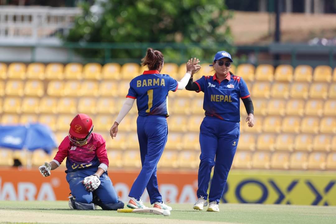 नेपालकी कप्तान इन्दु बर्माले ४ ओभरमा १९ रन खर्चेर ३ विकेट लिइन् । स्पिनर कृतिका मरासिनीले २ ओभरमा १५ रन खर्चेर १ विकेट लिइन् । सबनम राइले ३ ओभरमा २७ रन खर्चेर १ विकेट लिइन् । कविता जोशीको नाममा १ विकेट रह्यो । नेपालले दोस्रो खेल ६ साउनमा पाकिस्तान र ८ साउनमा भारतसँग खेल्नेछ ।