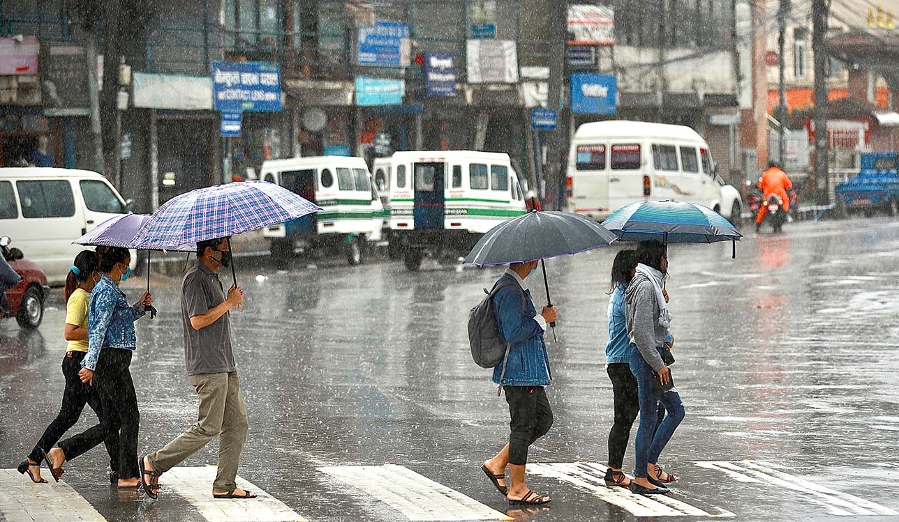 आज राति कोशी, मधेस, बागमती, गण्डकी र लुम्बिनी प्रदेशका केही स्थानहरूमा तथा बाँकी प्रदेशको थोरै स्थानहरूमा चट्याङ्गसहित हल्कादेखि मध्यम वर्षाको सम्भावना रहेको छ। कोशी, मधेस र गण्डकी प्रदेशका एक–दुई स्थानमा भारी वर्षाको पनि सम्भावना रहेको छ।