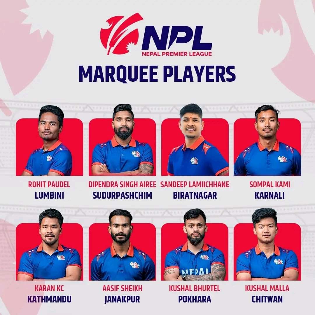 जस अनुसार काठमाडौंको मार्की प्लेयरमा करण केसी, पोखराको कुशल भुर्तेल, चितवनको कुशल मल्ल, विराटनगरको सन्दीप लामिछाने, जनकपुरको आसिफ सेख, लुम्बिनीको रोहित पौडेल, कर्णालीको सोमपाल कामी र सुदूरपश्चिमको दीपेन्द्रसिंह ऐरी मार्की प्लेयर बनेका छन् ।
