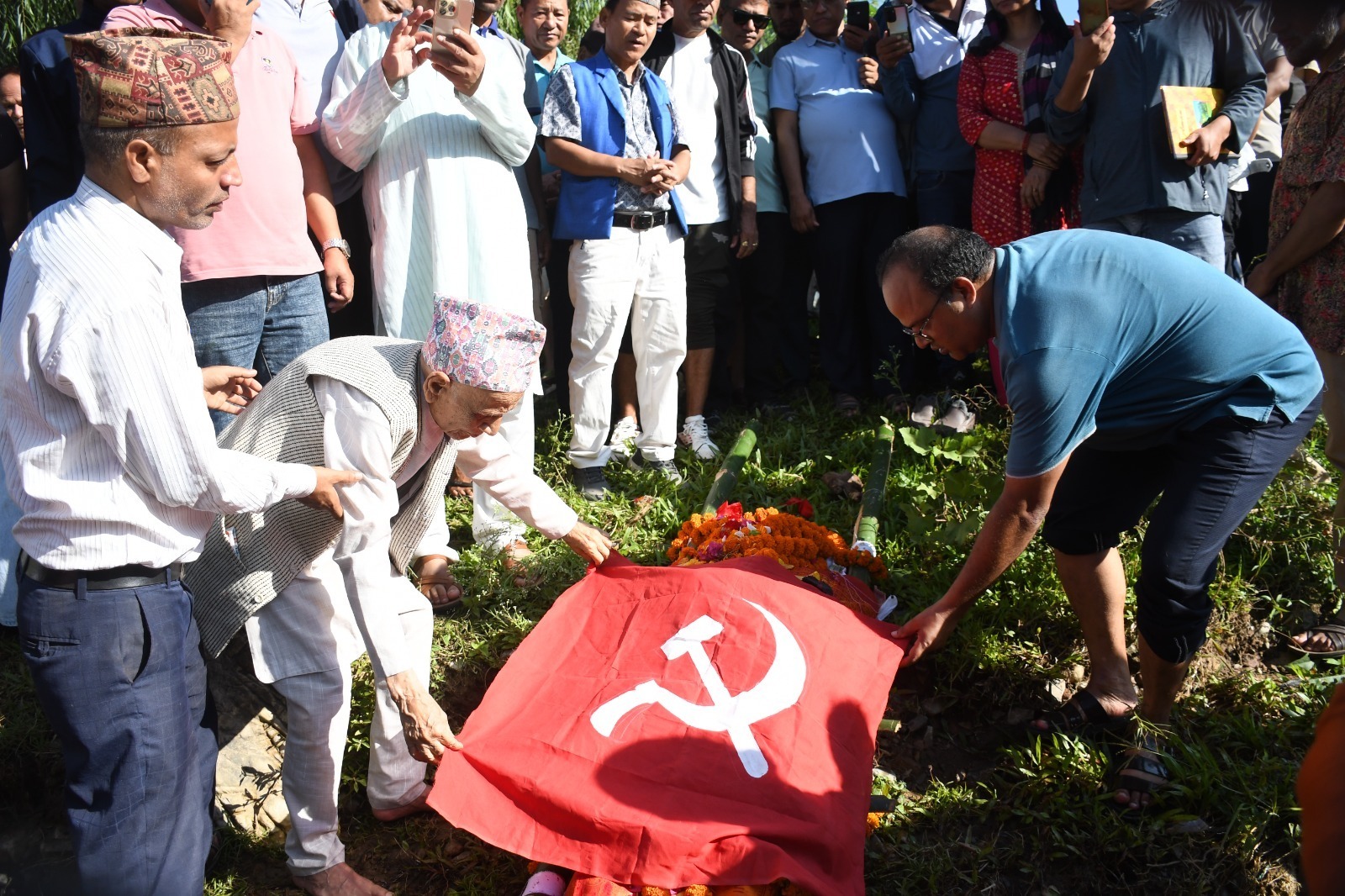बरिष्ठ साहित्यकार गिरिराज शर्मालाई नेपाल कम्युनिष्ट पार्टी दाङका संस्थापक सेक्रेटरी नारायणप्रसाद शर्माले कम्युनिष्ट पार्टीको झण्डा ओढाएर अन्तिम श्रद्धाञ्जली दिएका छन् ।