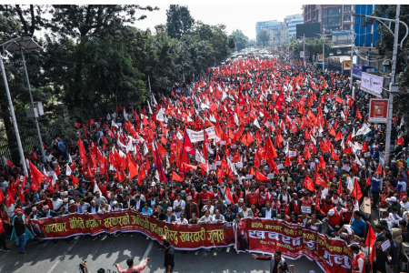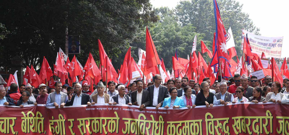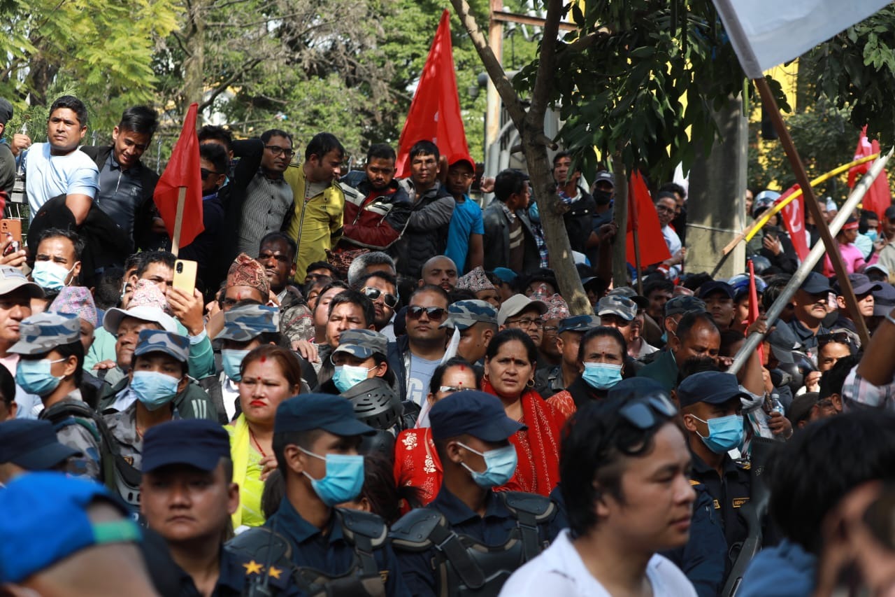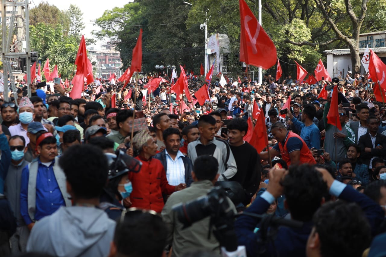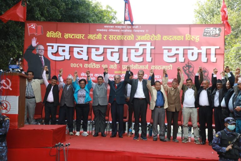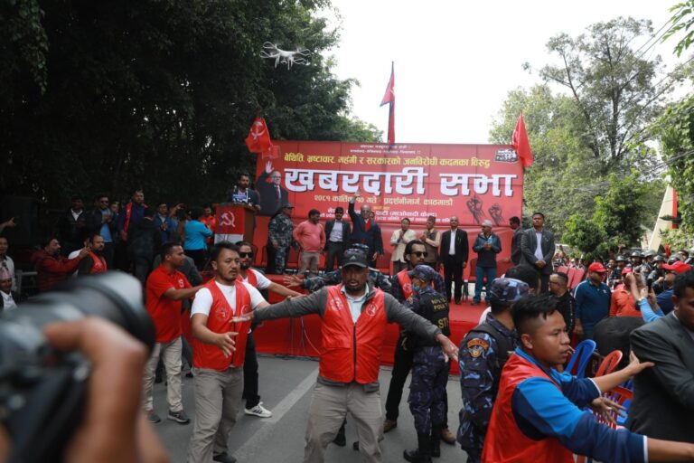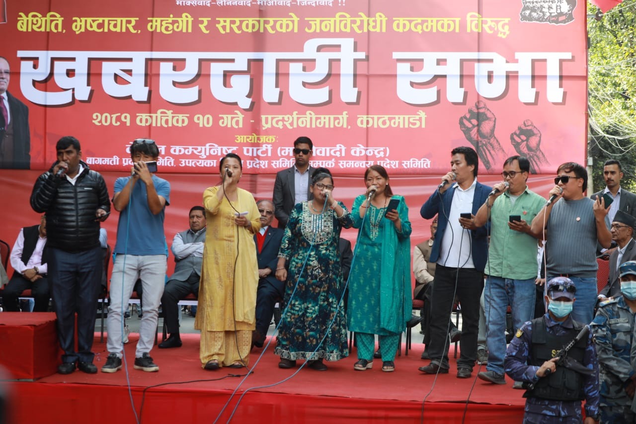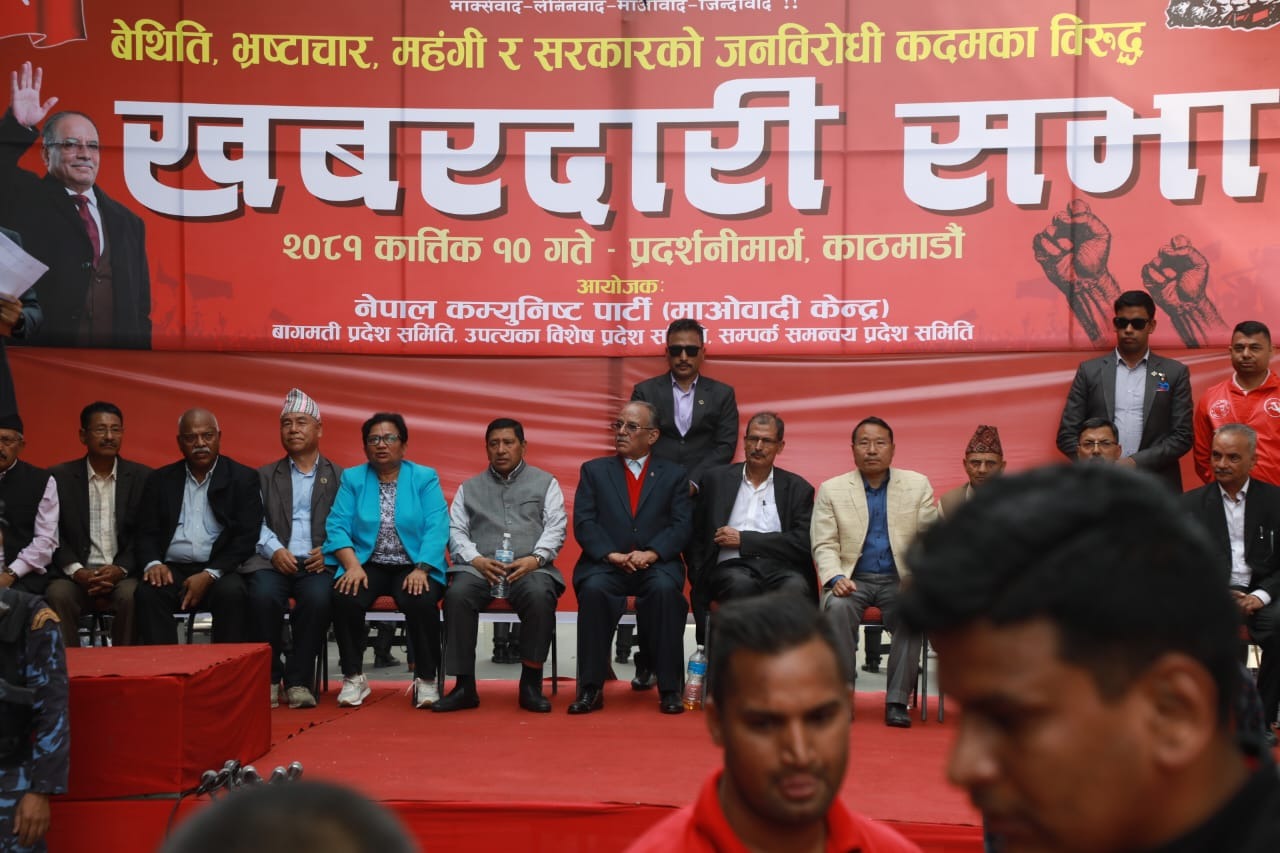नेकपा माओवादी केन्द्रले आयोजना गरेको खबरदारी सभा काठमाडौंको भृकुटीमण्डपमा चलिरहेको छ ।