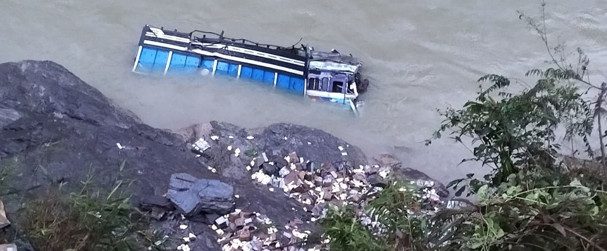 पृथ्वीराजमार्ग अन्तर्गत धादिङको बेनीघाट रोराङ गाउँपालिका १० खयरघारीबाट एक ट्रक त्रिशूली नदीमा खसेको छ । दुर्घटनास्थलबाट तीन जना घाइतेको उद्धार गरिएको प्रहरीले जनाएको छ ।