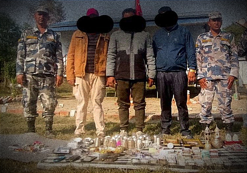 भारतबाट नेपालतर्फ आउँदै गरेका उनीहरूलाई जाँच गर्दा ८० लाख ७९ हजार ५६१ रुपैयाँ बराबरको ६२० ग्राम सुन, १५ लाख २८ हजार ४ सय ६० रुपैयाँ बराबरको ८ किलो ९१४ ग्राम चाँदी, विभिन्न दरका ६ लाख ११ हजार ६२५ भारतीय रुपैयाँ, साउदी रियाल, विभिन्न किसिमका चार थान मोबाइल सेट र चाँदीका लेप लगाएका भाँडाकुडासहित नियन्त्रणमा लिइएको सशस्त्रले जनाएको छ ।