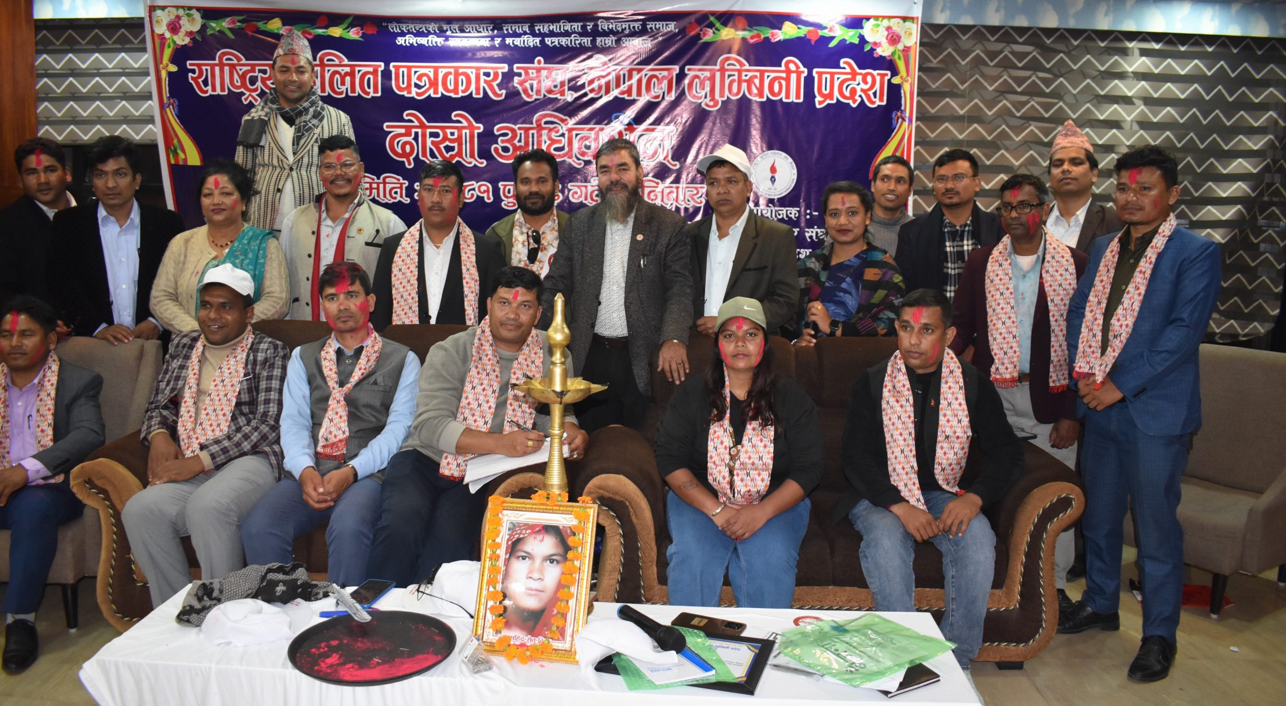 ६ पुष,नेपालगञ्ज।राष्ट्रिय दलित पत्रकार संघ नेपाल ,लुम्बिनी प्रदेशकाे अध्यक्षमा बाँकेका टेकेन्द्र बस्याल सर्वसम्मत निर्वाचित भएका छन् । शनिबार बाँकेकाे नेपालगञ्जमा सम्पन्न दाेस्राे प्रदेश अधिवेशनबाट बस्यालको अध्यक्षतामा १६ सदस्यीय कार्यसमिति निर्वाचित गरिएको हो। संघको वरिष्ठ उपाध्यक्षमा प्युठानका लाेकेन्द्र सुनार पाल्पाका कृष्ण दर्नाल र रोल्पाका भरत नेपाली उपाध्यक्षमा निर्वाचित भएका छन् ।त्यस्तै सचिवमा अर्घाखाँचीका अनिल नेपाली,सह–सचिवमा रुपन्देहीका विवेक विश्वकर्मा र दाङका अरुण कुमार नेपाली निर्वाचित भएका छन् भने कोषाध्यक्षमा बाँकेका विधुत्मा रैका निर्वाचित हुनुभएकाे छ ।