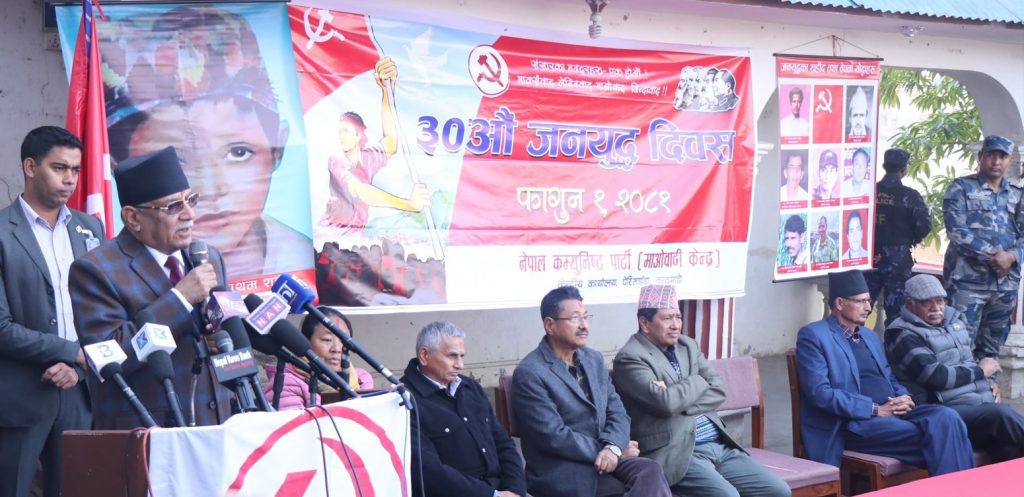 माओवादी केन्द्रका अध्यक्ष पुष्पकमल दाहाल प्रचण्डले जनयुद्धको प्रेरणा सयौँ वर्षसम्म रहने बताएका छन् । ३०औँ जनयुद्ध दिवसको अवसरमा पार्टी केन्द्रीय कार्यालय पेरिसडाँडामा आयोजित कार्यक्रमलाई सम्बोधन गर्दै उनले यस्तो धारणा राखेका हुन् । ‘जनयुद्ध नेपालको इतिहासमा सबैभन्दा ठुलो युगान्तकारी परिवर्तन गराउने परिघटना थियो,’ उनले भने, ‘यसले आज मात्र होइन, सयौँ वर्षसम्म पनि प्रेरणा दिइरहनेछ । यसलाई कसैले मेटाउन सम्भव छैन, जसले मेटाउने प्रयास गर्छ, ऊ खरानी हुनेछ ।’