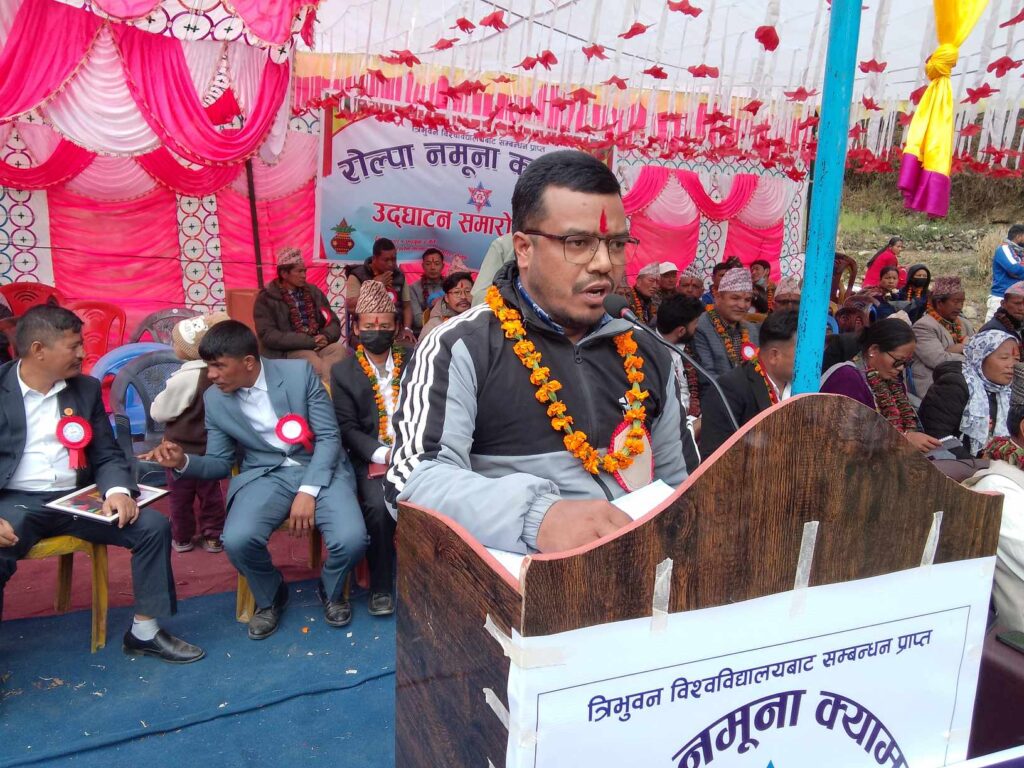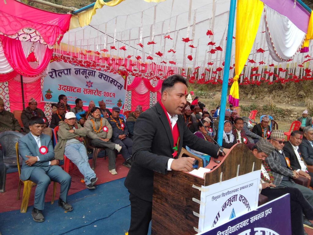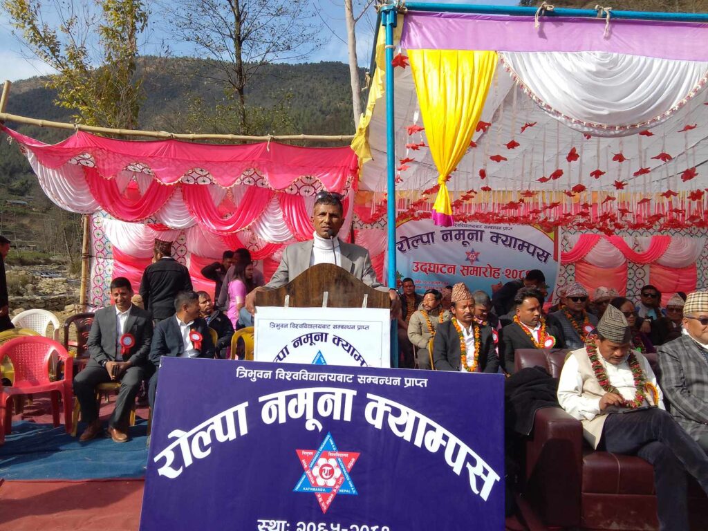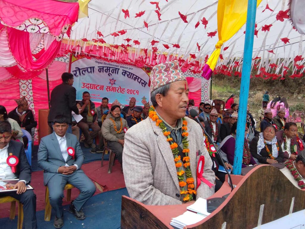 रोल्पा नमूना क्याम्पस व्यवस्थापन समितिका अध्यक्ष गोपाल बहादुर केसीको अध्यक्षतामा भएको उक्त क्याम्पस उद्घाटन कार्यक्रमको नेकपाका महासचिव नेत्र विक्रम चन्द विप्लबको प्रमुख आतिथ्यता रहेको थियोे ।