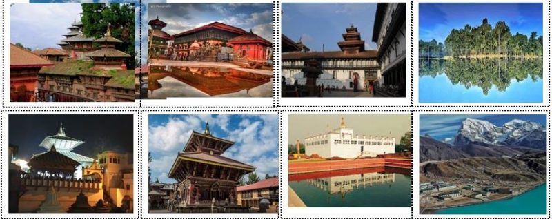 विश्व सम्पदा क्षेत्रमा हाल नेपालका काठमाडौँ (वसन्तपुर, पाटन र भक्तपुर दरबार क्षेत्र, चाँगुनारायण, पशुपतिनाथ, बौद्ध, स्वयम्भू), लुम्बिनी तथा चितवन र सगरमाथा राष्ट्रिय निकुञ्ज सूचीकृत रहेका छन् ।
