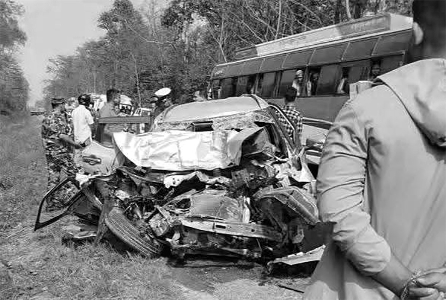 निजगढबाट पथलैया जाँदै गरेको प्र २-०३-००१ख०६०७ नम्बरको टिपर र विपरीत दिशाबाट आइरहेको बा ०१-०२५ च ५०७६ नम्बरको कार जीतपुर सिमरा नगरपालिका १६ स्थित भूइँपुल नजिक दिउँसो ३ बजेतिर ठोक्किएर दुर्घटना भएको हो ।
