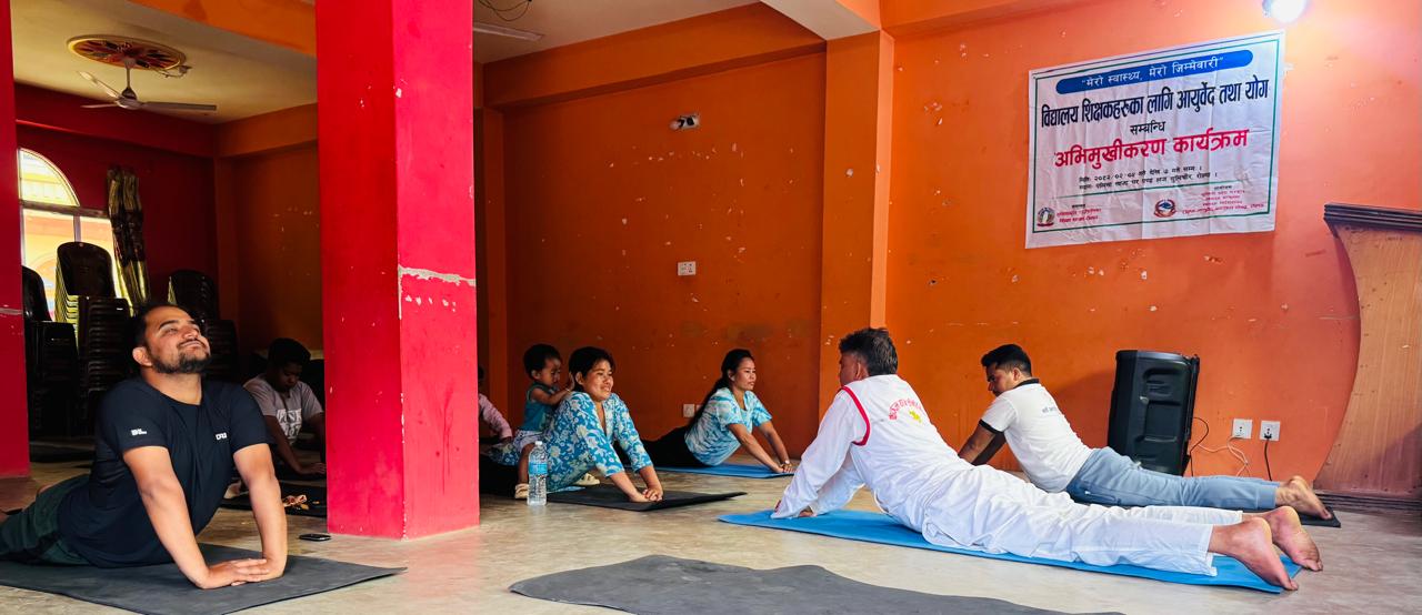 २०८२ जेठ ५ । विद्यालय शिक्षकहरूलाई लक्षित गर्दै “मेरो स्वास्थ्य, मेरो जिम्मेवारी” भन्ने नारासहित आयुर्वेद तथा योगसम्बन्धी अभिमुखीकरण कार्यक्रम रोल्पाको सुलिचौरमा सुरु भएको छ ।