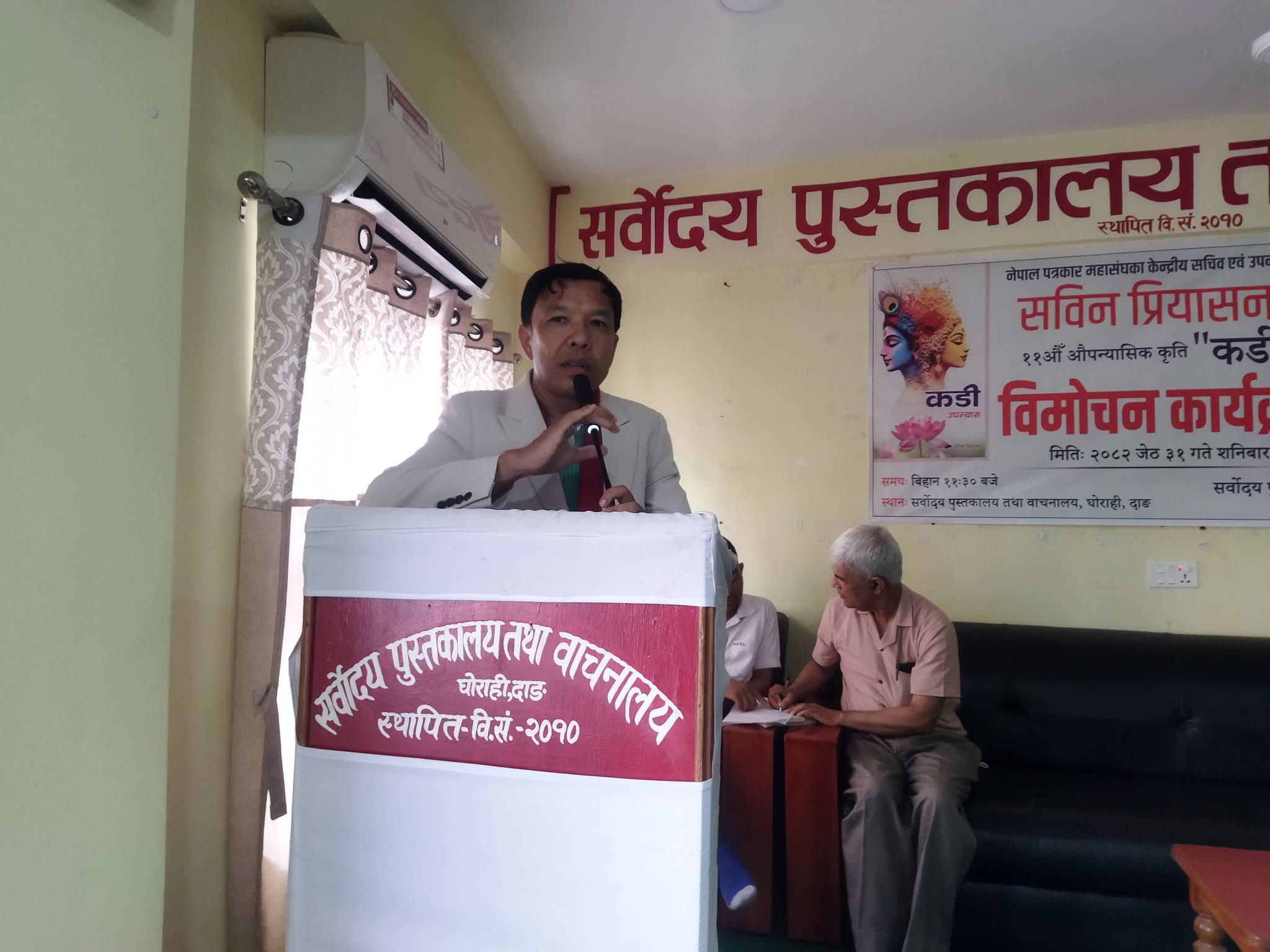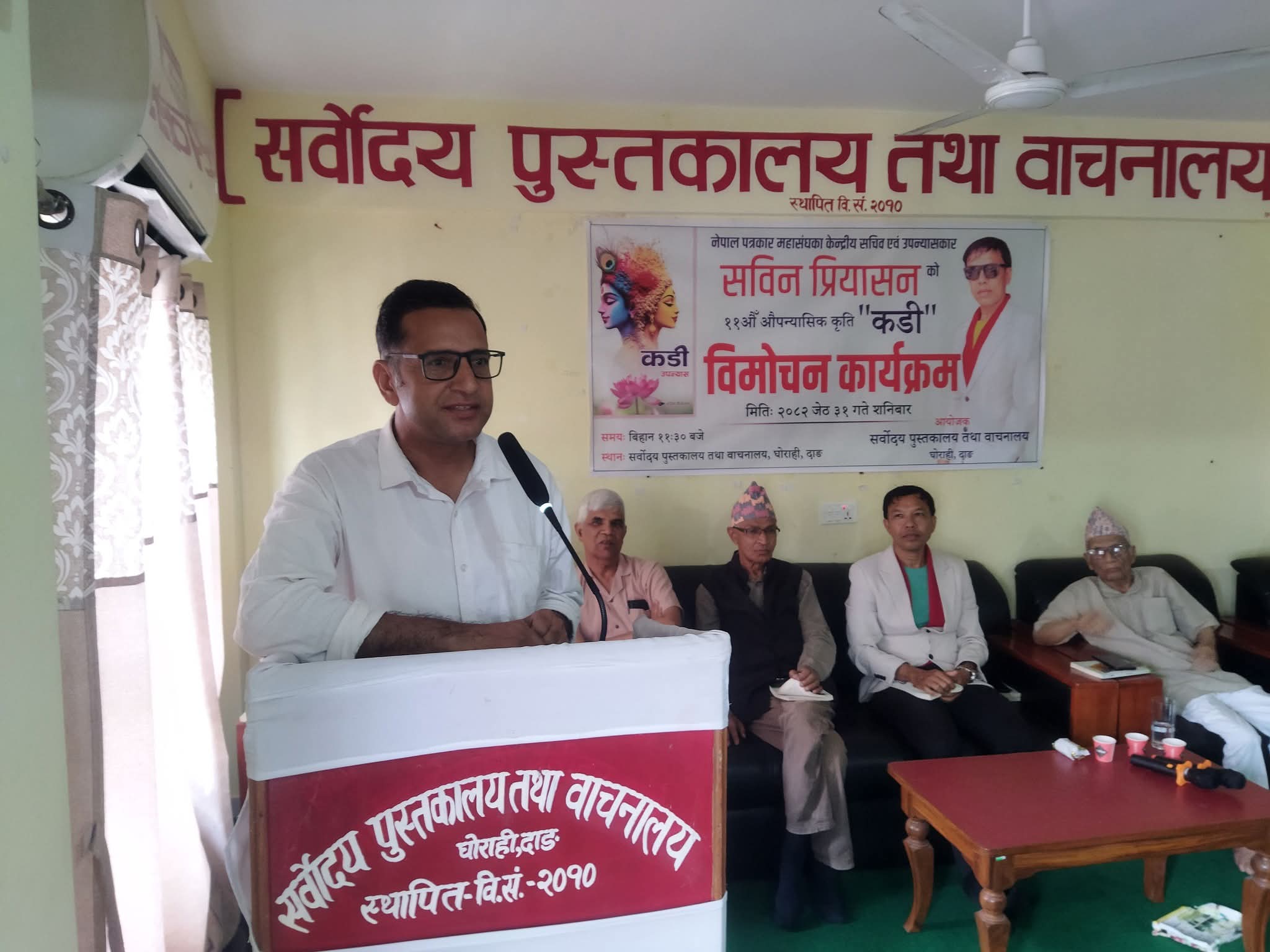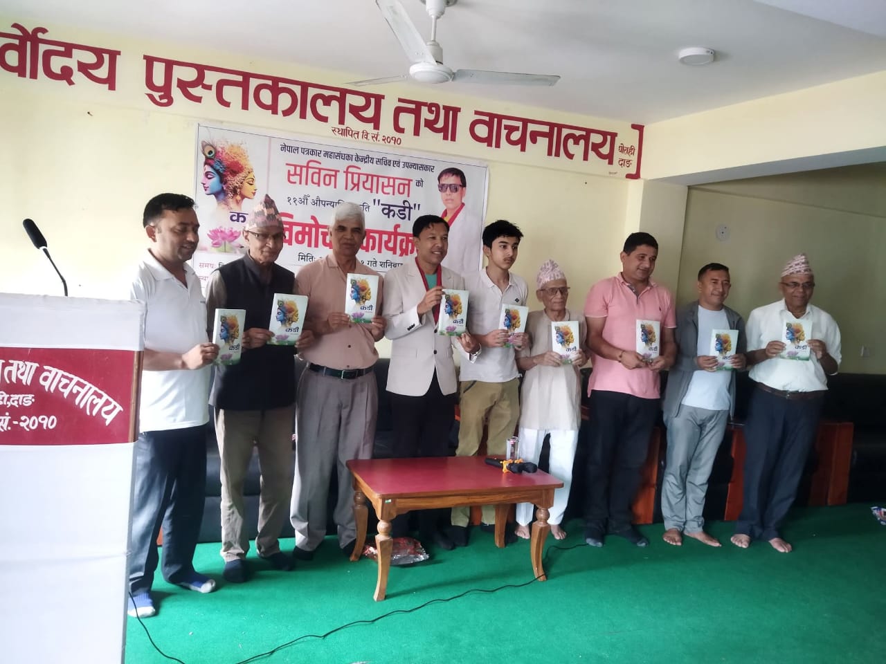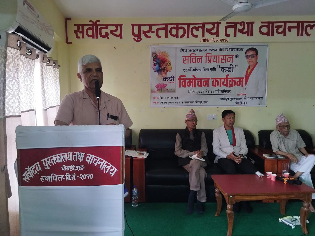 सर्वोदय पुस्तकालय तथा वाचनालयका अध्यक्ष सुशील गौतमको अध्यक्षता तथा वरिष्ठ साहित्यकार नारायण प्रसाद शर्माकाे प्रमुख अतिथ्यतामा उपन्यास ‘कडी’काे विमाेचन गरिएकाे थियाे।
