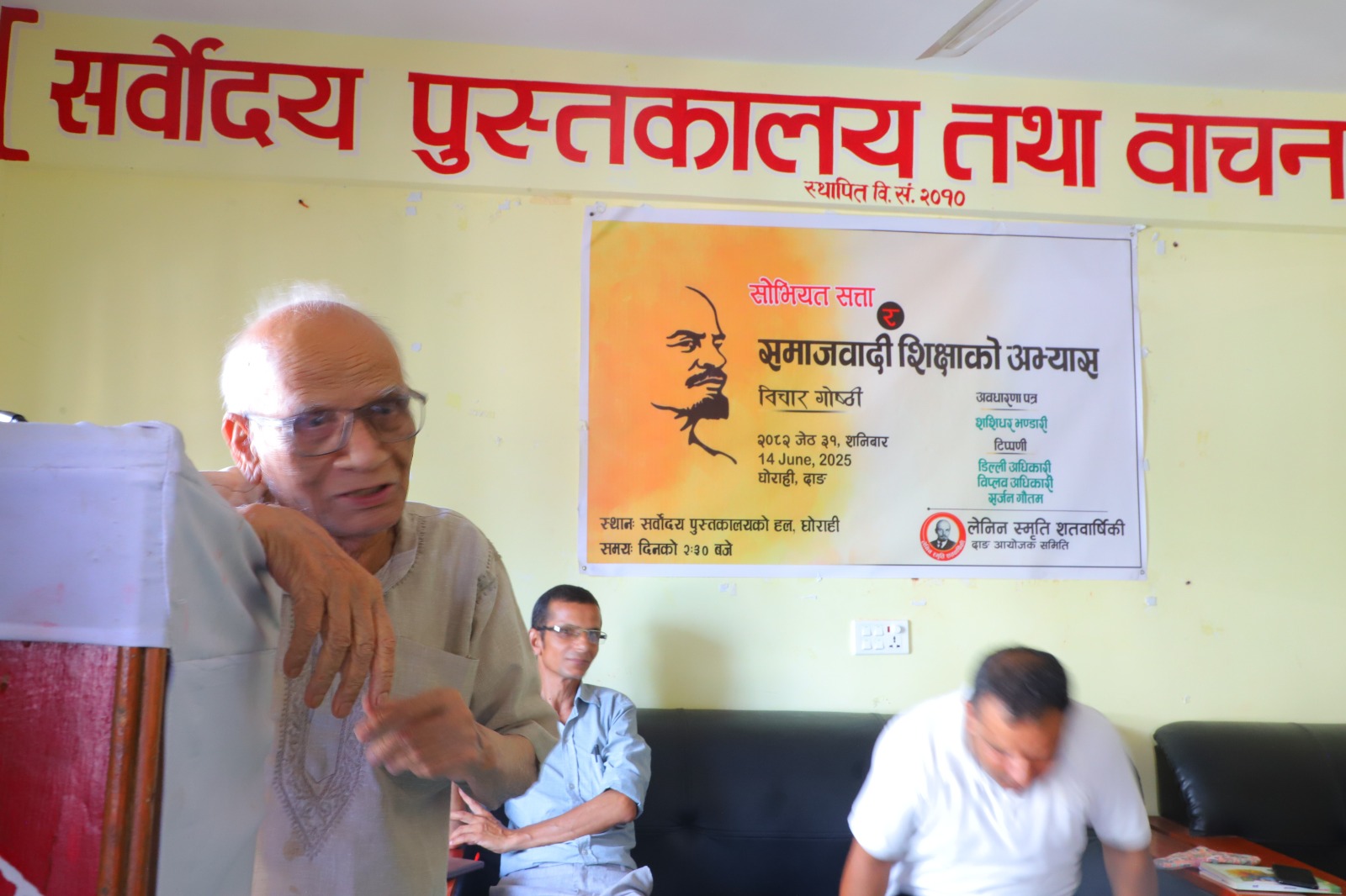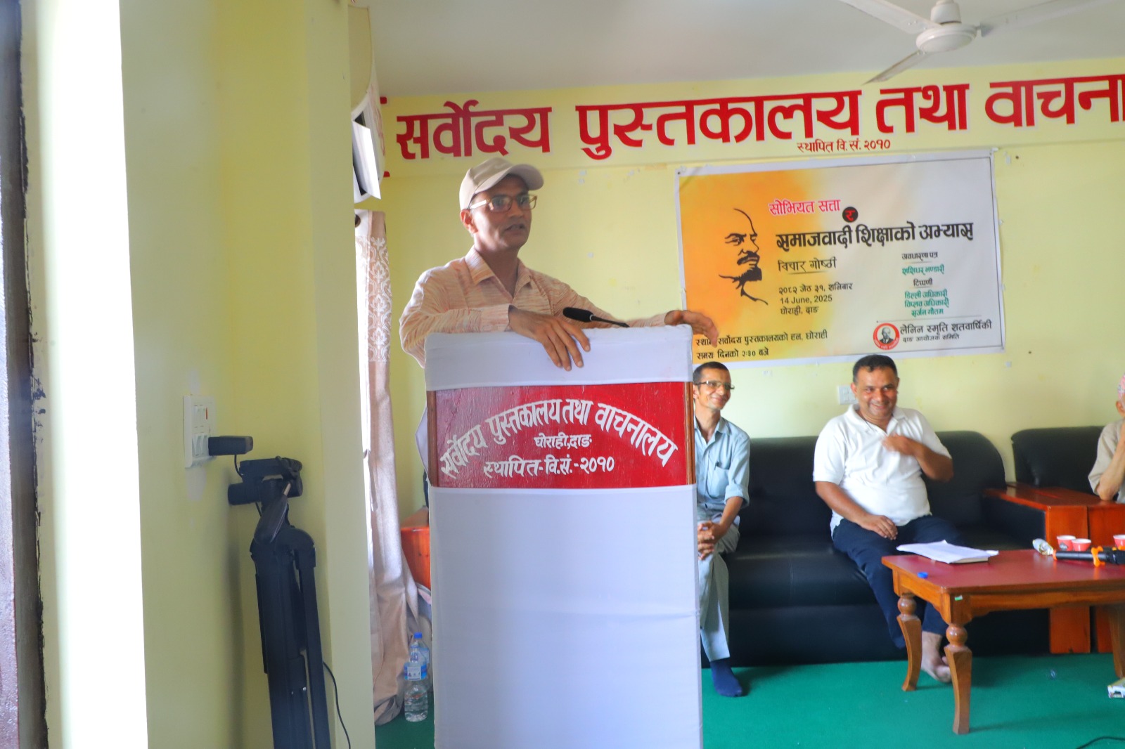 दाङको घोराहीमा अवस्थित सर्वोदय पुस्तकालयको सभाहलमा “सोभियत सत्ता र समाजवादी शिक्षाको अभ्यास” विषयक विचार गोष्ठी सम्पन्न भएको छ ।