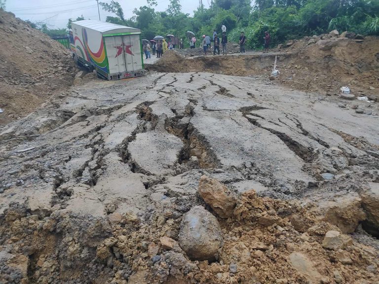 वर्षापछि खुर्सानी खोलानजिक सडक भाँसिएसँगै सोही ठाउँमा लु१क ५८२७ नम्बरको ट्रक फसेपछि उक्त खण्डमा रातिदेखि नै यातायात पूर्णरुपमा बन्द भएको हो ।