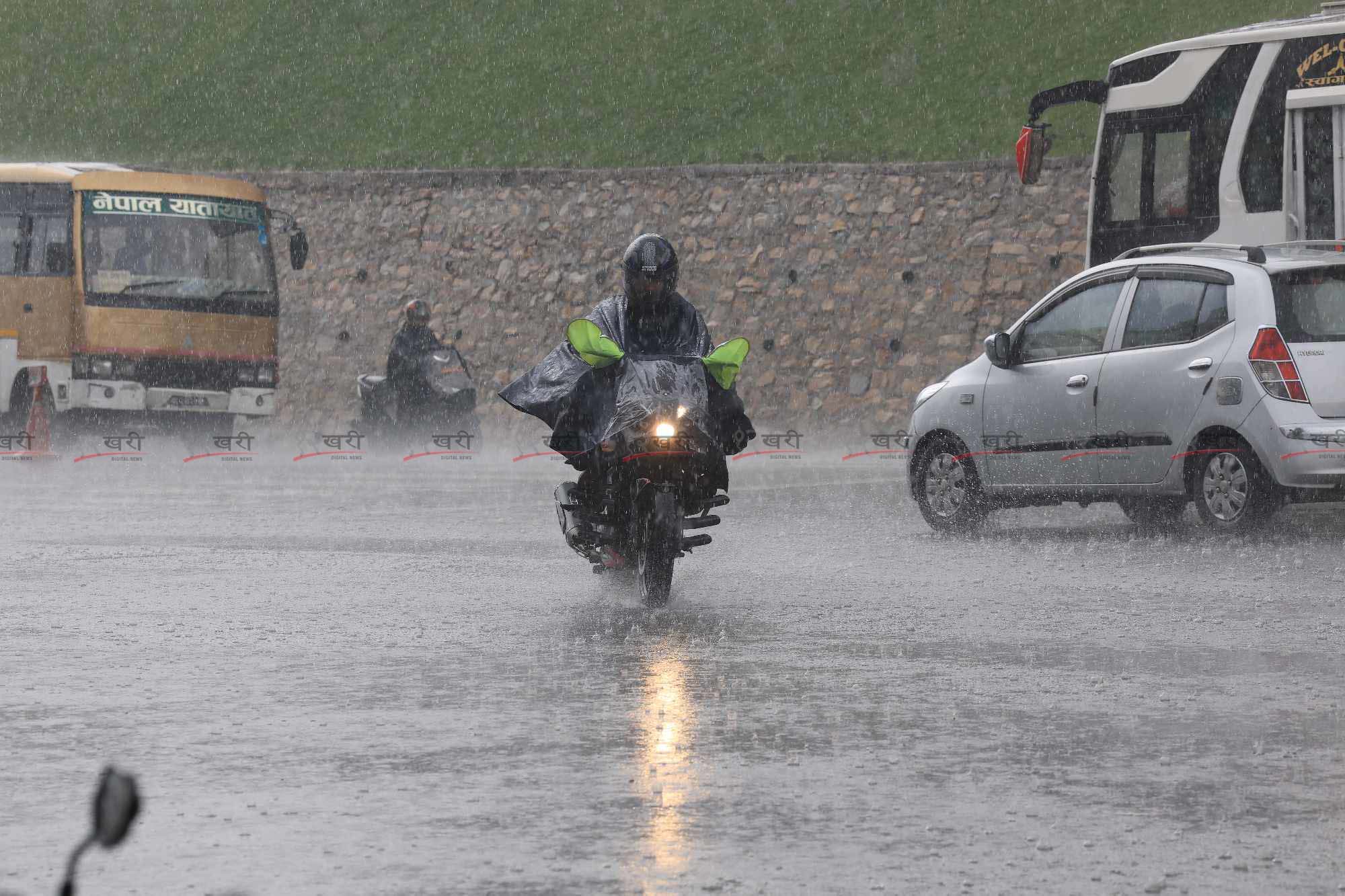 आज दिउँसो बागमती, गण्डकी, लुम्बिनी र सुदूरपश्चिम प्रदेशका एक–दुई स्थानमा भारी वर्षाको सम्भावना रहेको महाशाखाले जनाएको छ । लुम्बिनी, कर्णाली र सुदूरपश्चिम प्रदेशका पहाडी भूभागका केही स्थानहरूमा तथा बाँकी भू–भागका थोरै स्थानहरूमा भने मेघगर्जन/चट्याङसहित हल्कादेखि मध्यम वर्षाको सम्भावना छ ।