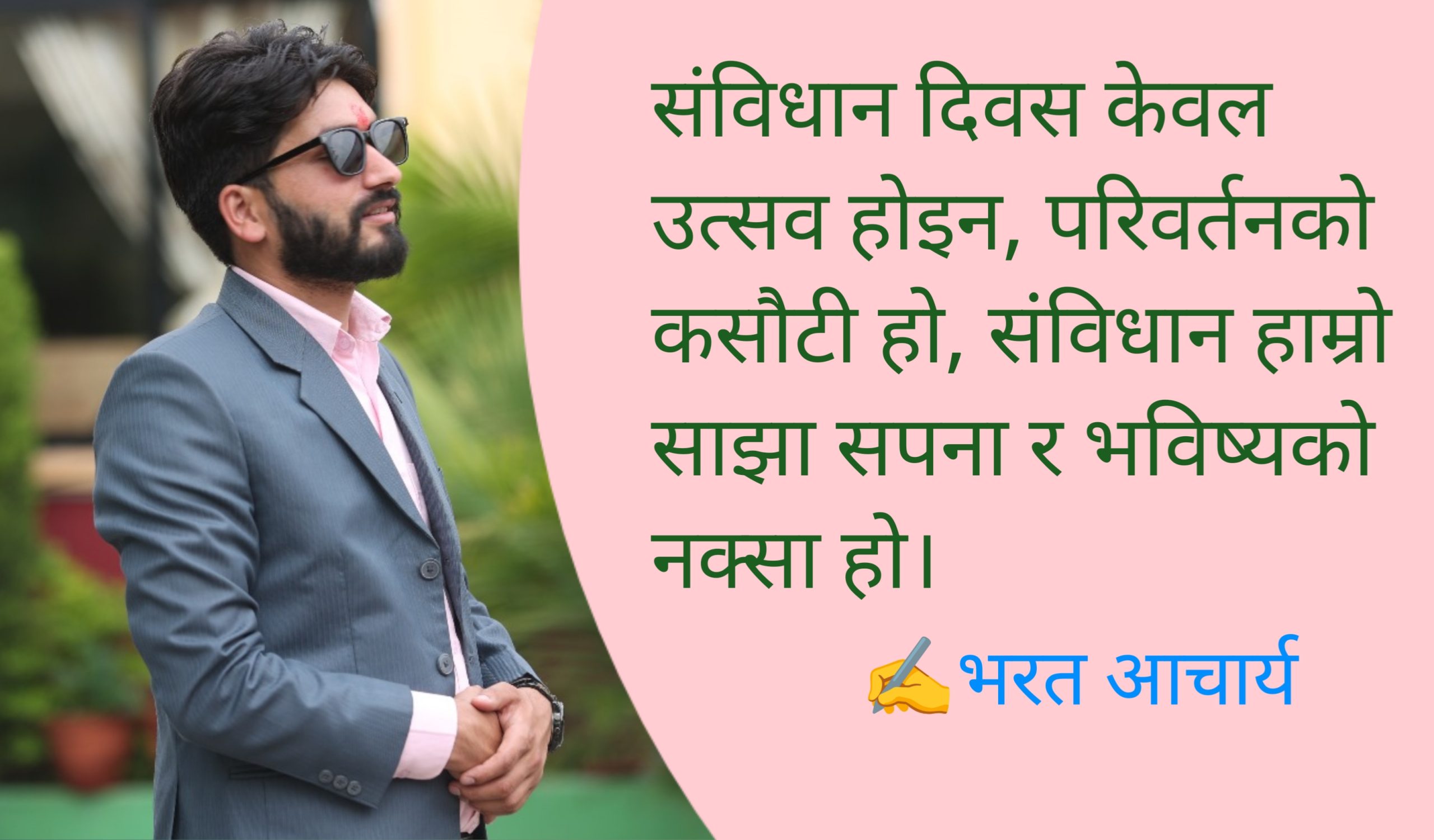 तर जनताले अधिकार माग्ने र नेताहरूले दायित्व बुझ्ने हो भने, असोज ३ साँच्चिकै नयाँ नेपालको आधारशिला बन्न सक्छ। जेन्जी आन्दोलनले यही चेतावनी दिएको छ !!संविधान दिवस केवल उत्सव होइन, परिवर्तनको कसौटी हो। संविधान हाम्रो साझा सपना र भविष्यको नक्सा हो।