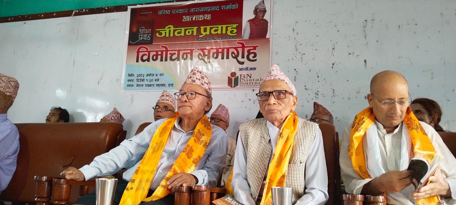 शताब्दी पुरुष, बरिस्ठ साहित्यकार, अग्रज पत्रकार एवम् राजनीतिक सामाजिक अभियन्ता नारायण प्रसाद शर्माकाे आत्मकथा जीवन प्रवाह ईक भव्य कार्यक्रमबीच विमाेचन गरिएको छ । साे पुस्तक विमाेचन समाराेहमा बाल्दै परराष्ट्रबिद्, पूर्वमन्त्री तथा पूर्व राजदूत हिरण्यलाल श्रेष्ठले साहित्यकार तथा वरिष्ठ पत्रकार नारायणप्रसाद शर्माको आत्मकथा ‘जीवन प्रवाह’ दाङ जागरणको इतिहासको रुपमा आएको बताएका छन् ।