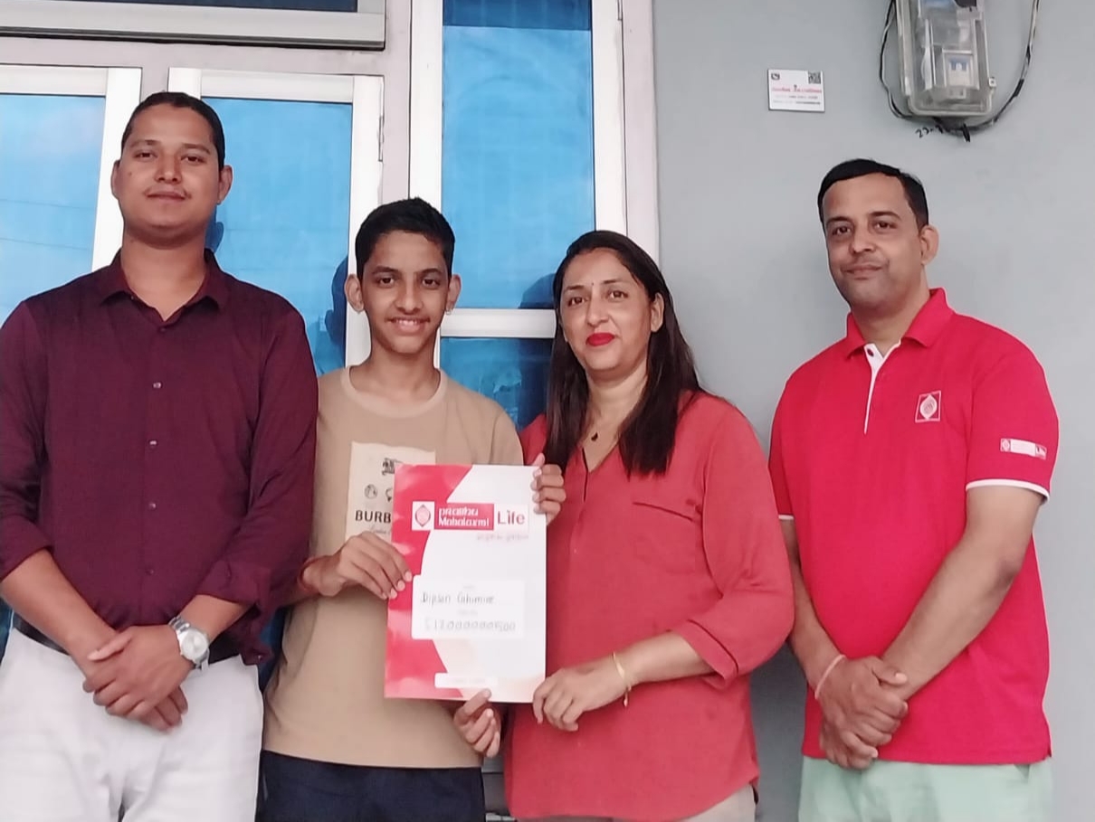 मुर्गिया शाखाका शाखा प्रमुख श्री ऋषिराम चुदाली र कर्मचारी निश्चल बस्नेतको उपस्थितिमा सो बिमा पोलिसी कल्पना घिमिरेले आफ्नो छोरा श्री दिप्सन घिमिरेलाई जन्मदिनको उपहार स्वरुप दिएकी हुन् ।