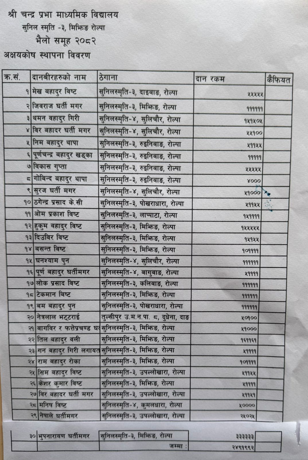 अक्षयकोषमा ३० जना दानवीरको योगदान