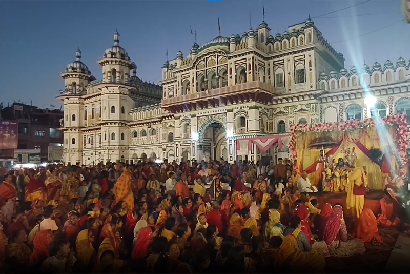 रंगभूमिमा स्वयंवरविधि, परीक्षणको वैवाहिक विधि सम्पन्न भएपछि सीता–रामलाई जानकी मन्दिरमा ल्याइन्छ। त्यसपछि मिथिला संस्कृतिअनुसार विवाह सम्पन्न हुन्छ । यस अवसरमा निस्केको भगवानको डोला शोभायात्रामा राज्यका विभिन्न स्थानलगायत सीमावर्ती भारतीय क्षेत्रका श्रद्धालु भक्तजनसमेत सहभागी हुन्छन्।