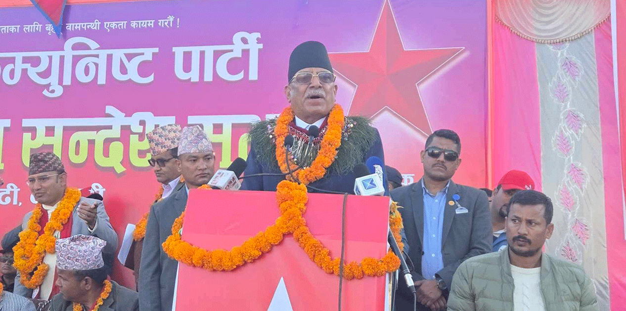 नेपाल कम्युनिष्ट पार्टीका संयोजक पुष्पकमल दाहाल ‘प्रचण्ड’ले मुलुकको रक्षा र विकासका लागि सम्पूर्ण लोकतान्त्रिक शक्तिहरूलाई हातेमालो गर्न आग्रह गरेका छन्। विराटनगरमा आयोजित एकता सन्देश कार्यक्रमलाई सम्बोधन गर्दै उनले यस्तो बताएका हुन्। उनले राष्ट्र अझै पनि संकटमुक्त नरहेको भन्दै चिन्ता व्यक्त गरे।