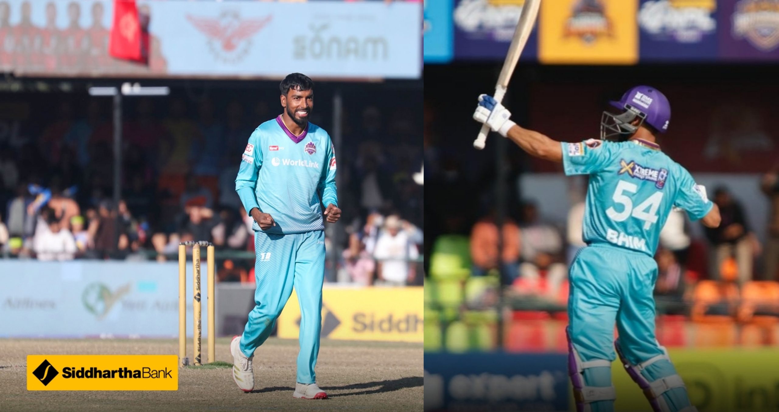 यस्तै आक्रमक ब्याटिङ गरेका भीम शार्कीले एनपीएलमा यस सिजन संयुक्त रुपमा सबैभन्दा छिटो १९ बलमा अर्धतशक प्रहार गरे । भीमले २३ बल खेल्दै ५ चौका र ४ छक्का मदतमा ५५ रन बनाए ।