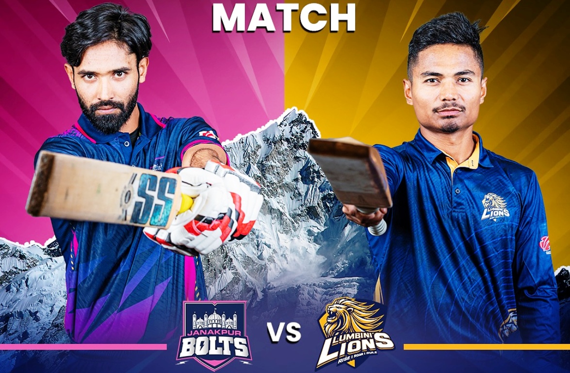 काठमाडौंको त्रिवि क्रिकेट मैदानमा जारी सिद्धार्थ बैक नेपाल प्रिमियर लिग (एनपीएल) त्रिकेटमा आज लुम्बिनी लायन्स र जनकपुर बोल्ट्सबिच प्रतिस्पर्धा हुँदैछ । खेल अपराह्न चार बजे हुनेछ ।