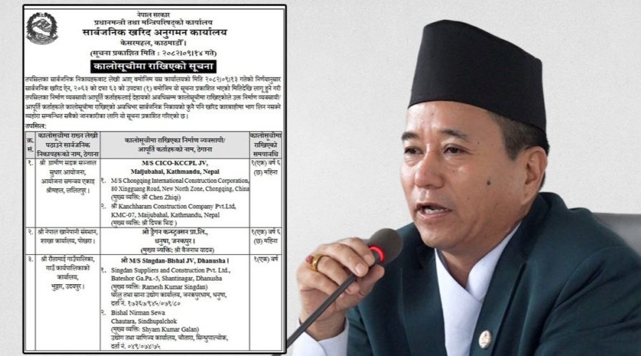सो सिफारिस अनुसार कालोसूचीमा राख्ने निर्णय पुस १३ गते भएको सार्वजनिक खरिद अनुगमन कार्यालयले आज जारी गरेको सूचनामा लेखिएको छ । कालो सूचीको डेढ वर्षे अवधि भने आज सूचना प्रकाशित भएको मिति पुस १४ गतेदेखि गणना सुरु भएको छ ।