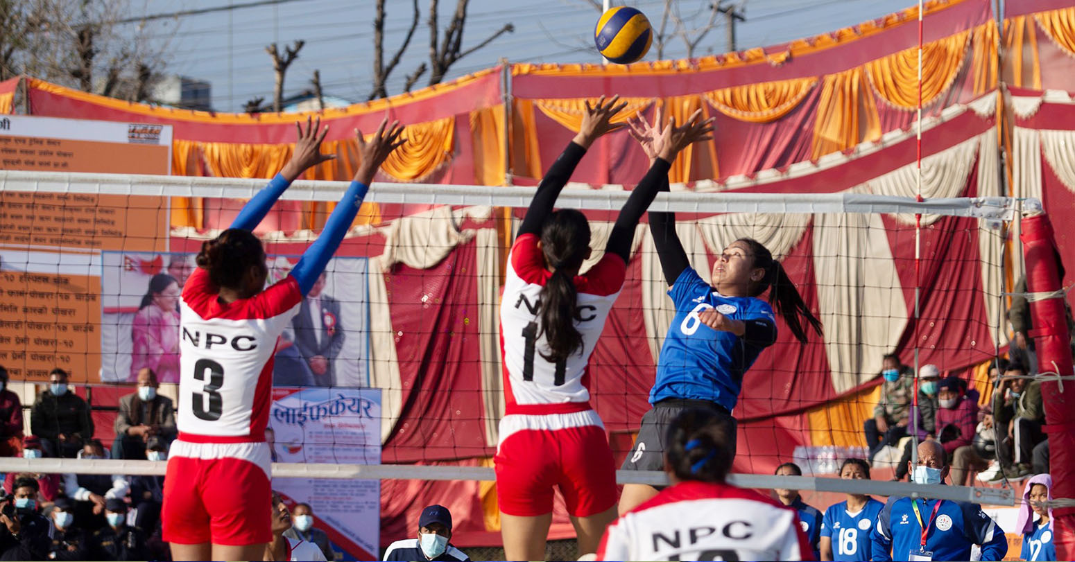 त्रिपुरेश्वरस्थित राष्ट्रिय खेलकुद परिषद् (राखेप) को कभर्ड हलमा पुलिसले एपिएफलाई ३–२ ले हराएर महिला भलिबलको अन्तिम चारमा पुगेको हो । पुलिसले लगातार दोस्रो खेलमा जित हात पारेको हो । समूह ‘बी’ मा एक खेल गुमाए पनि अघिल्लो दुई खेल जितेको एपिएफ पनि अन्तिम चारमा पुगेको छ।
