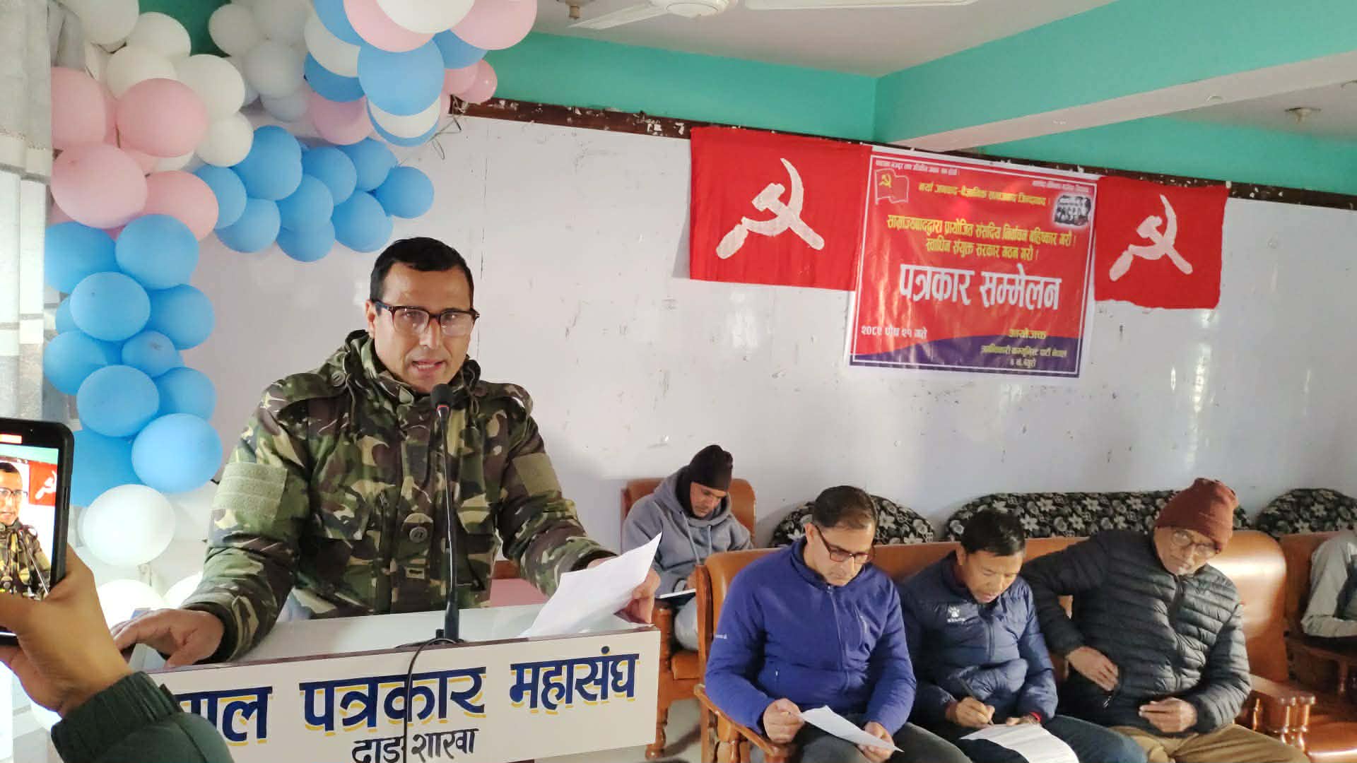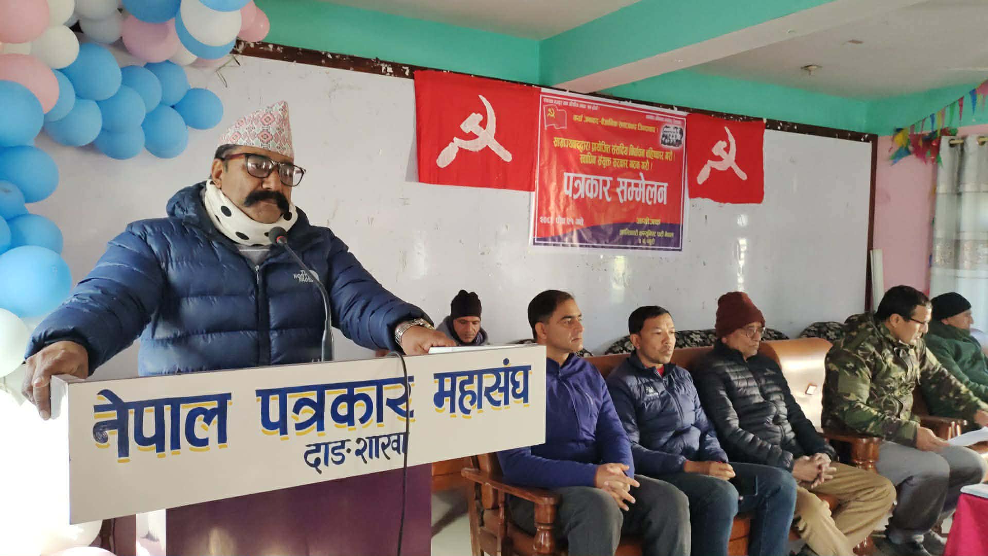 नेपाल पत्रकार महासंघकाे सभाहलमा भएको साे कार्यक्रमकाे अध्यक्षता क्रान्तिकारी कम्युनिस्ट पार्टी नेपाल ब्युरो नम्बर ४ का सेक्रेटरी समीर के सीले गरेका थिए भने प्रमुख वक्ता ब्युराे संयाेजक एवम् पाेलिटब्युराे सदस्य कृष्णराज पाैडेलले प्रस वक्तव्य पेस गरेका थिए । केन्द्रीय सदस्य नारायण भण्डारीकाे स्वागत मन्तव्यबाट सुरु भएको कार्यक्रमकाे सहजीकरण क्रान्तिकारी कम्युनिस्ट पार्टी नेपालका केन्द्रीय सदस्य तथा दाङ जिल्ला इञ्चार्ज हुकुम खडकाले गरेका थिए ।