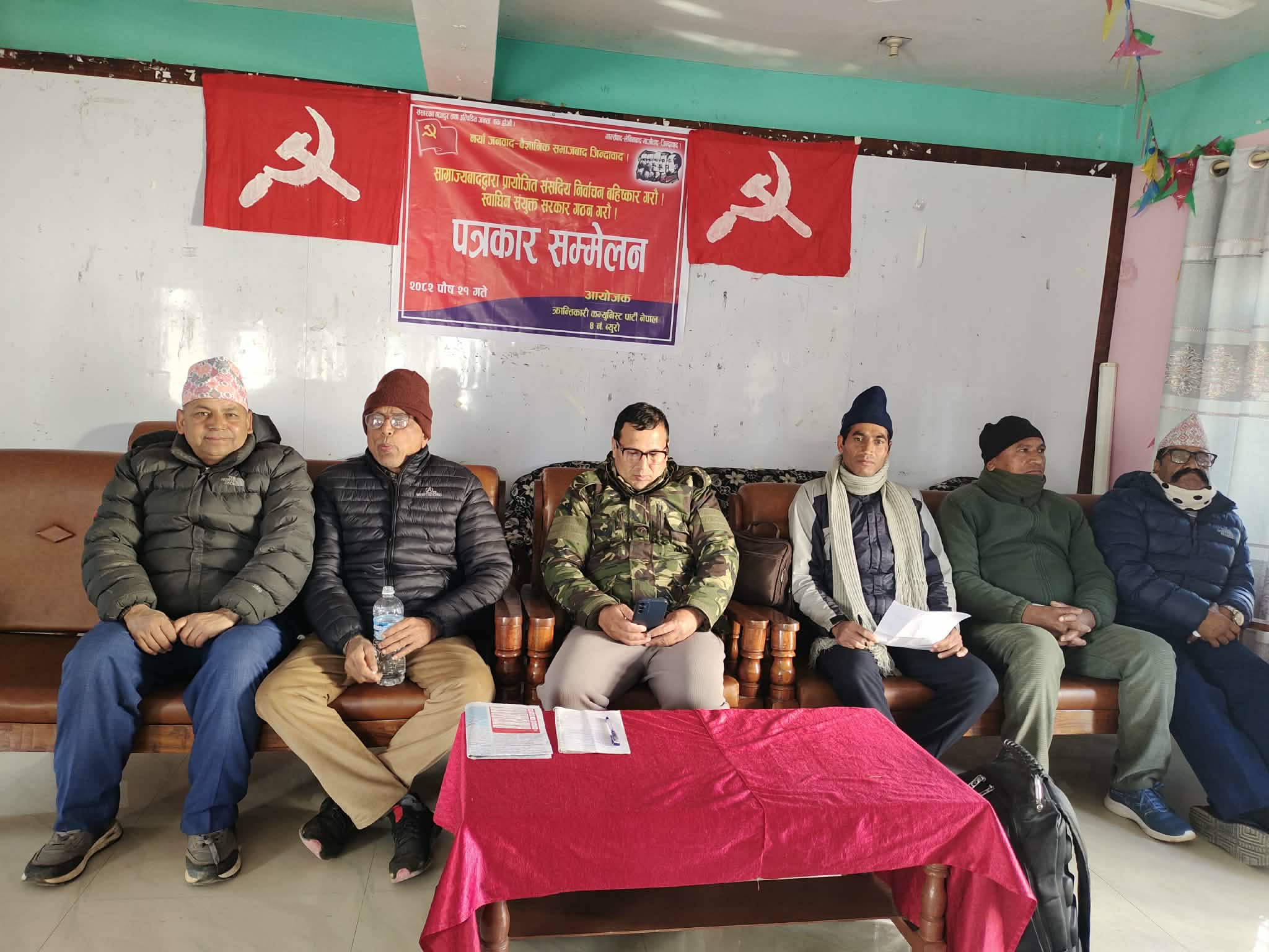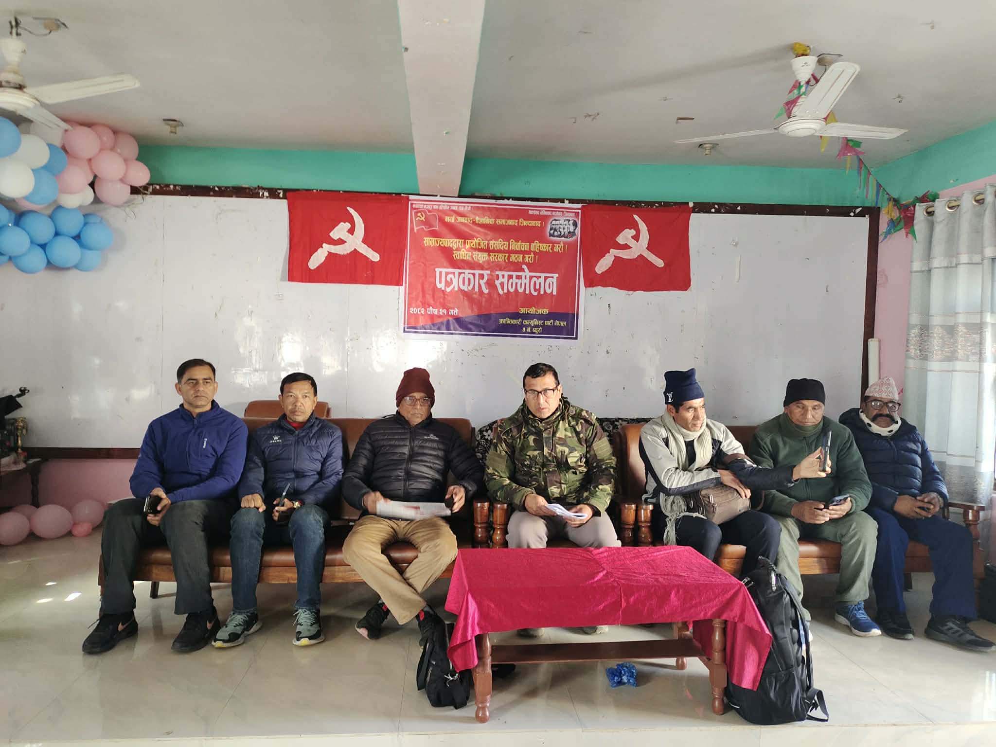 क्रान्तिकारी कम्युनिष्ट पार्टी नेपालले आगामी फागुन २१ गते हुनगइरहेको प्रतिनिधिसभा चुनावलाई सशक्त रुपमा बहिष्कार गर्ने जनाएको छ। यथास्थितिमा हुने कुनै पनि खाले निर्वाचनले नयाँ प्रकारका जेलेन्स्किहरु र राष्ट्रघातीहरू नै जन्माउने निष्कर्ष सहित मुलुकको खास समस्याहरूको हल गर्ने ठोस आधारहरू तयार नहुँदासम्म निर्वाचनमाथि निर्वाचन थोपरेर मात्रै मुलुकले निकास नपाउने र जनताका आधारभूत समस्या हल नहुने निष्कर्षसहित आगामी फागुनमा हुन लागेको निर्वाचनलाई सशक्त रुपमा बहिष्कार गर्न खोजिएको सो पार्टीको ४ नम्बर ब्युरोले आइतबार घोराहीमा पत्रकार सम्मेलन गरेर जानकारी गराएको छ ।