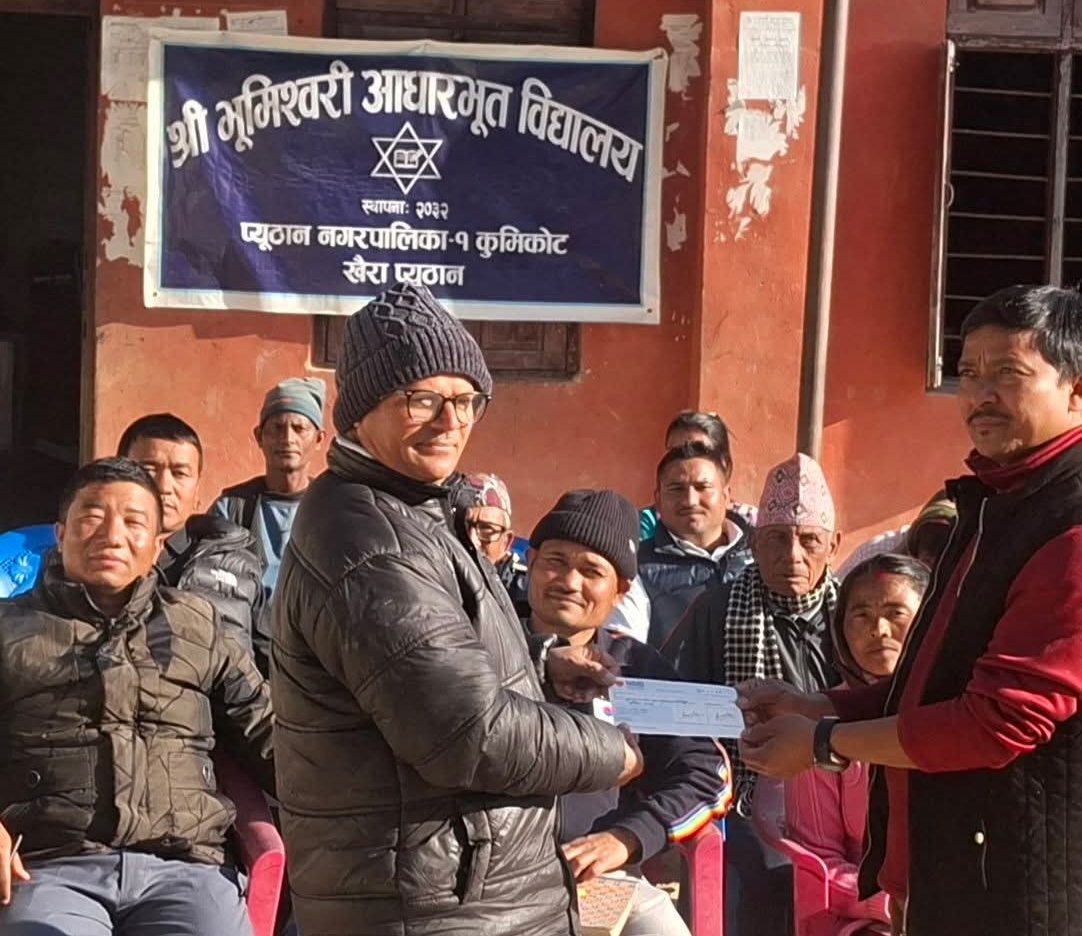 रसाइलीले भुमिश्वरी आधारभूत विद्यालय, कुमिकोटमा अक्षयकोष स्थापना गर्ने उद्देश्यले रु.२ लाख ५ हजार ५२५ जम्मा गरी सो कोषबाट प्राप्त हुने लाभांश विपन्न, जेहनदार तथा असहाय विद्यार्थीहरूलाई स्टेशनरी सामग्री वितरण गर्ने गरि आइतबार चेक हस्तान्तरण गरेका हुन् ।