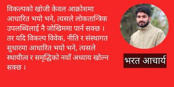 विग्रह, आक्रोश, आवेग, धाक र निषेधजस्ता तत्त्व राजनीतिमा हावी भयो भने त्यसले सबैभन्दा दुःख दिने जितेर आउने दललाई नै हो । सडक कब्जा गर्न त एक लाखमात्रै भए पनि पुग्छ । बिथोल्न, रोक्न, भत्काउन र बिगार्न ठूलो शक्ति चाहिन्न । भोलि सत्तासम्म पुग्ने लक्षण देखिएको दल सबै नेपालीलाई तोडेर होइन जोडेर लैजाने खालको भइदिए भन्ने चाहना र त्यस कोणबाट गरिने आलोचना जायज नै हो !