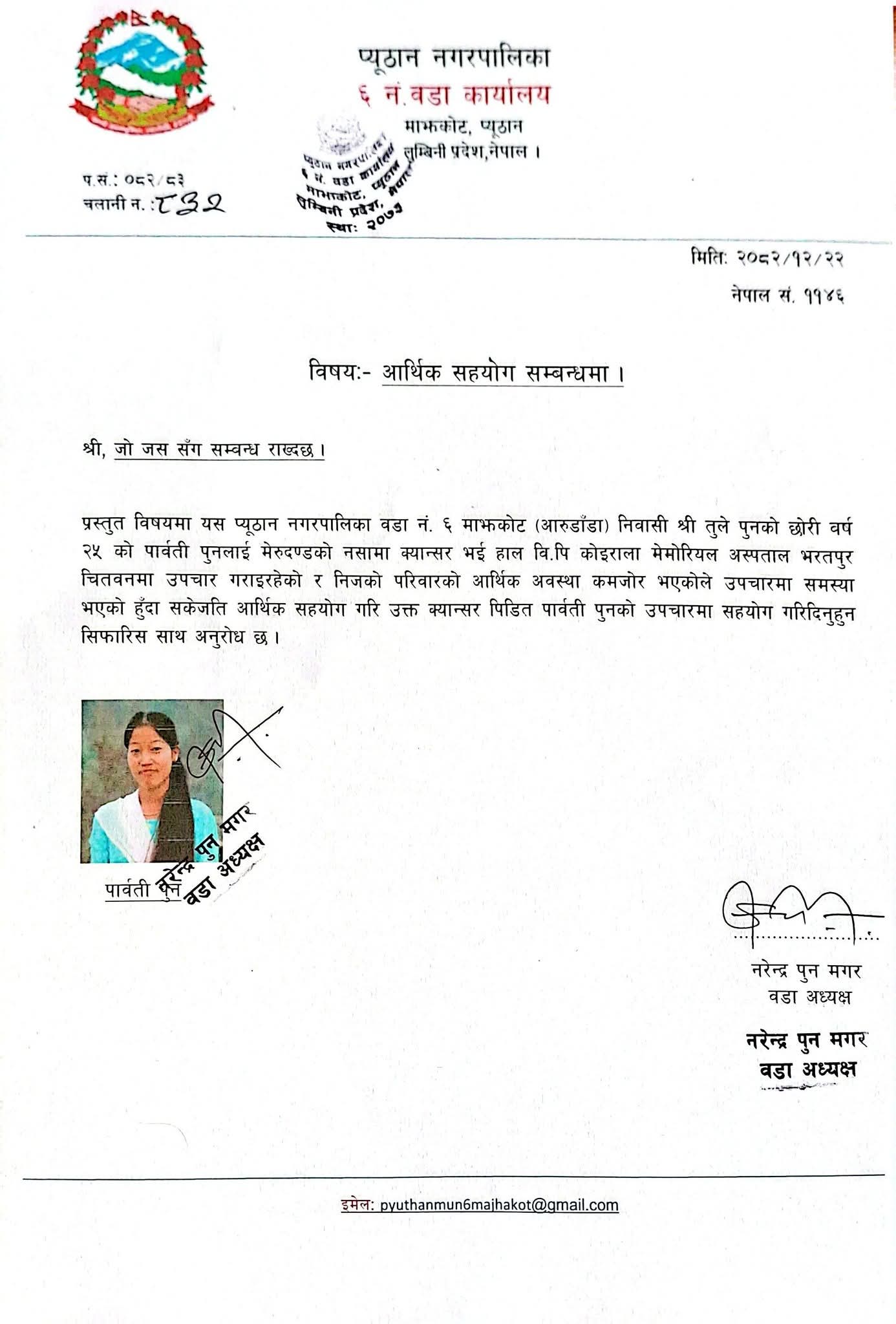 प्युठान नगरपालिका–६, माझकोटकी २५ वर्षीया पार्वती पुन विगत डेढ वर्षदेखि कलकलाउँदो उमेरमा  जीवन र मृत्युको दोबाटोमा उभिएकी छिन्। झण्डै एक महिनादेखि उनको शरीर चल्न छोडेको छ भने हराएको भोक र गुमेको निद्राले उनको परिवारमा ठूलो त्रासदीपूर्ण छटपटाहट चलिरहेको छ । दुखेको घाउले पोलेको आर्तनाद पीडासँग पौंठेजोरी खेलिरहेकी पार्वतीको लडाइँ केवल क्यान्सरसँग मात्र सीमित छैन, बरु यो लडाइँ गरिबी, असमानता र राज्यको सदियौंदेखिको विभेद र मौनता विरुद्धको पनि लडिरेको छ ।