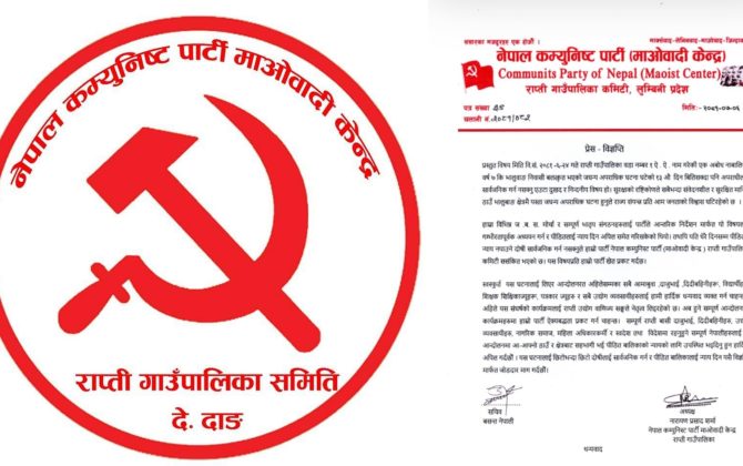 पुरा पढ्नुहोस६ कार्तिक, भालुबाङ नेकपा माओवादी केन्द्र राप्ती गाउँपालिका कमिटीले गत असाेज २४ गते राप्ती गाउँपालिका वडा नं. १ भालुवाङकी ८ वर्षीया नाबालिकामाथि भएको बलात्कार घटनामा संलग्न दाेषीलाई तत्काल पक्राउ गरि कानुन अनुसार कार्वाही गर्न माग...