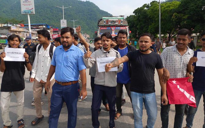 पेट्रोलियम पदार्थको मूल्यवृद्धिको विरोधमा बुटवलमा एक घण्टा चक्काजाम