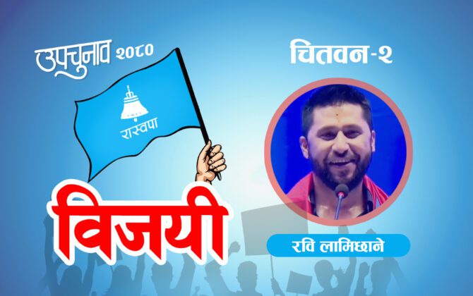पुरा पढ्नुहोसचितवन क्षेत्र नं. २ मा राष्ट्रिय स्वतन्त्र पार्टीका (रास्वपा) सभापति रवि लामिछाने भारी मतान्तरले विजयी भएका छन् । लामिछानेले ५४ हजार १ सय ७६ मत प्राप्त गरेर विजयी भएका छन् । उनका निकटतम् प्रतिस्पर्धी कांग्रेसका...