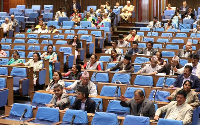 पुरा पढ्नुहोस२८ साउन, काठमाडौं संघीय संसद् प्रतिनिधि सभाको बैठक आज अपराह्न १ः०० बजे संघीय संसद् भवन नयाँ बानेश्वरमा बस्दैछ । आजको बैठकमा सञ्चार तथा सूचना प्रविधि मन्त्रालय, परराष्ट्र मन्त्रालय, उद्योग वाणिज्य तथा आपूर्ति मन्त्रालय, स्वास्थ्य तथा जनसङ्ख्या...