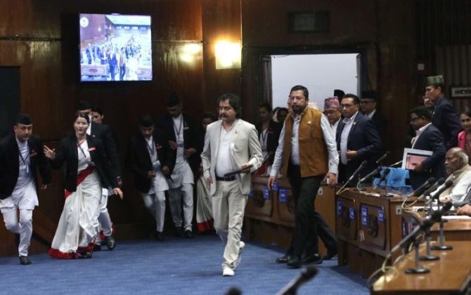२३ असार, काठमाडौं प्रतिनिधिसभा बैठकमा आज पनि रास्वपा र राप्रपाले अवरोध गरेको छ । भिजिट भिसा प्रकरणमा गृहमन्त्री रमेश लेखकको राजीनामा माग गर्दै दुवै दलले संसद् अवरोध गर्दै आइरहेको छ । यसैबीच आज पनि रास्वपा सांसदहरू रोस्ट्रम...